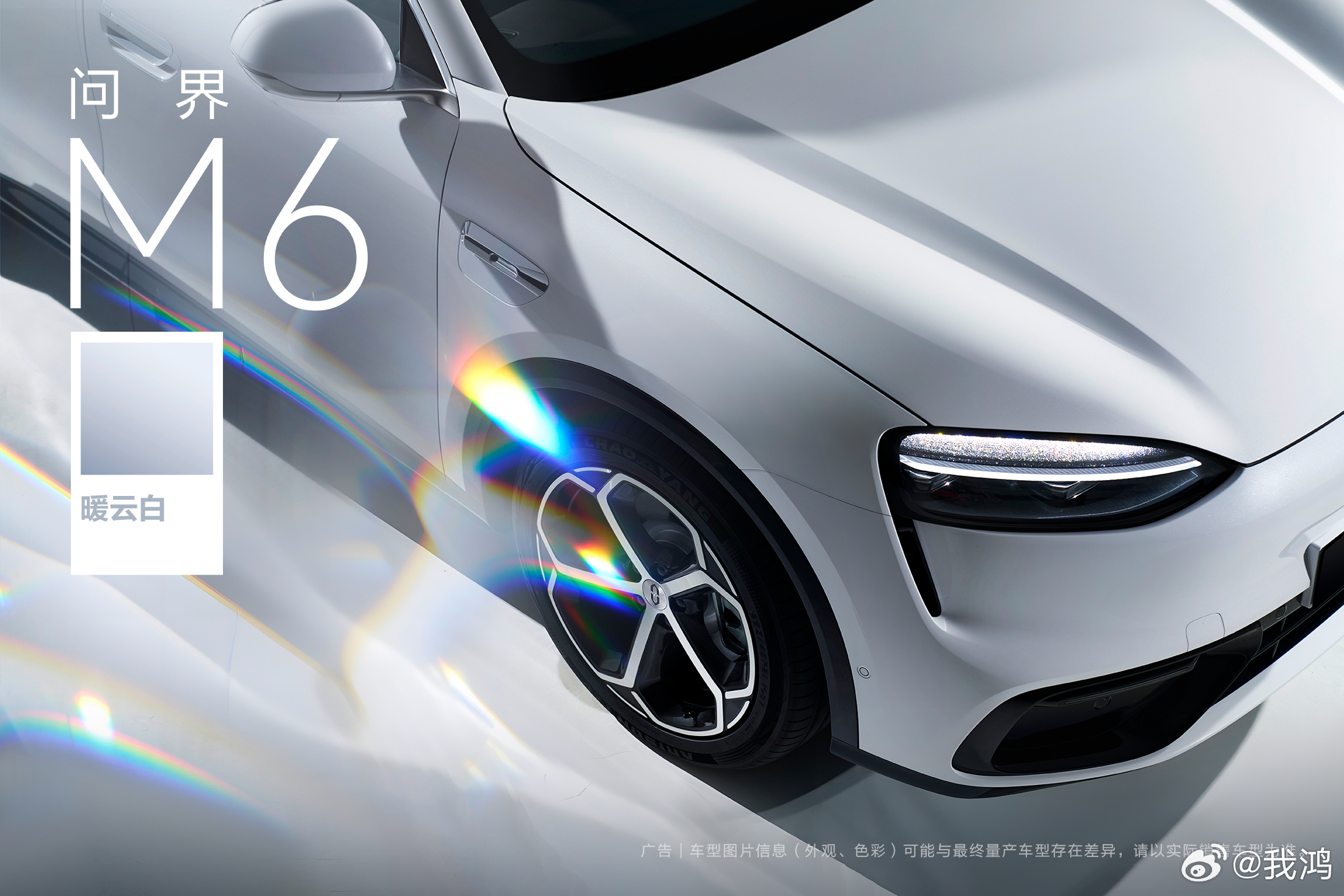 问界M6 「暖云白」配色,感觉选的人也很多哦。