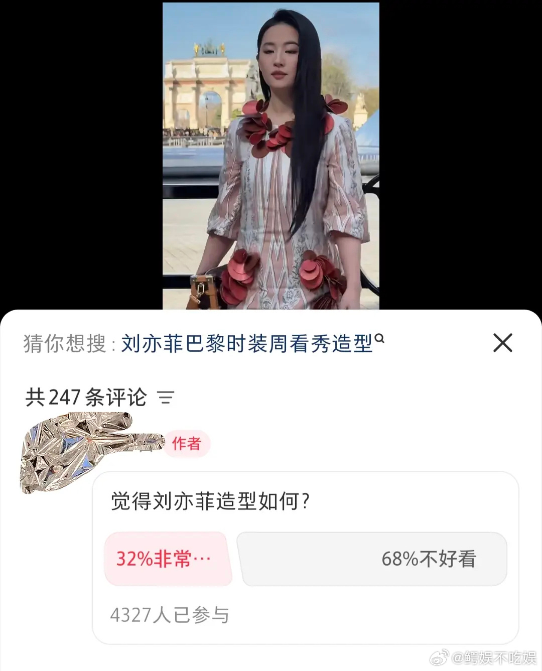 红薯上好多人觉得刘亦菲巴黎时装周看秀造型不好看,🧵是不是该减肥了?