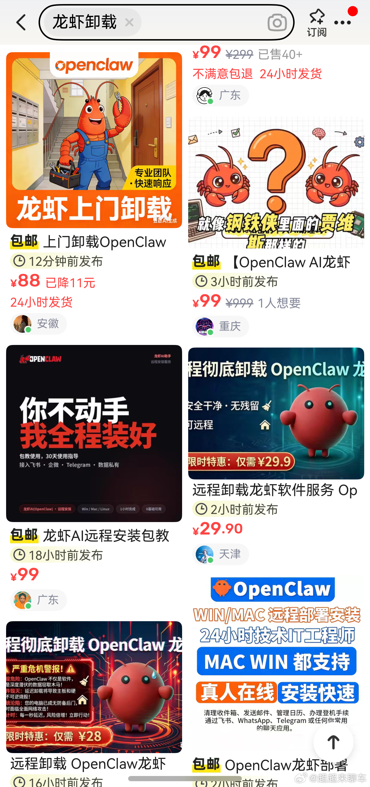 第一批养龙虾的已经转型卸龙虾了龙虾爆热带动token消耗爆发 闲鱼这个“海鲜市场”最近画风突变:前阵子大家还在疯狂找人帮忙“养龙虾”,这两天已经开始排队下单“卸龙虾”了。
