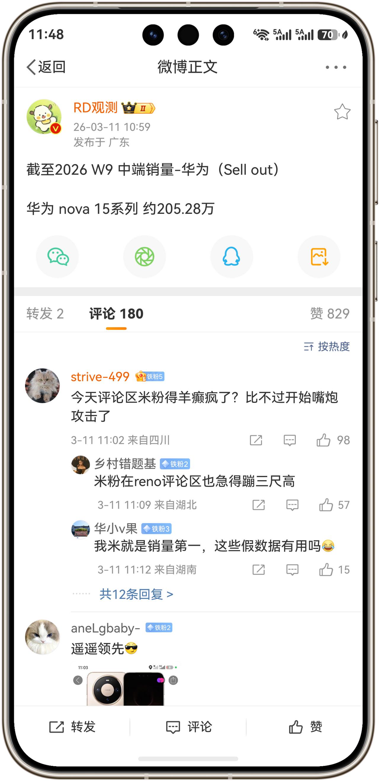 重磅消息!华为nova 15系列突破200万销量,累计总激活量达到205.28万台!截至2026年第9周,华为nova 15系列激活量约205.28万台,销量数据越来越好,期待华为能早日满血归来,把丢失的市场拿回来!