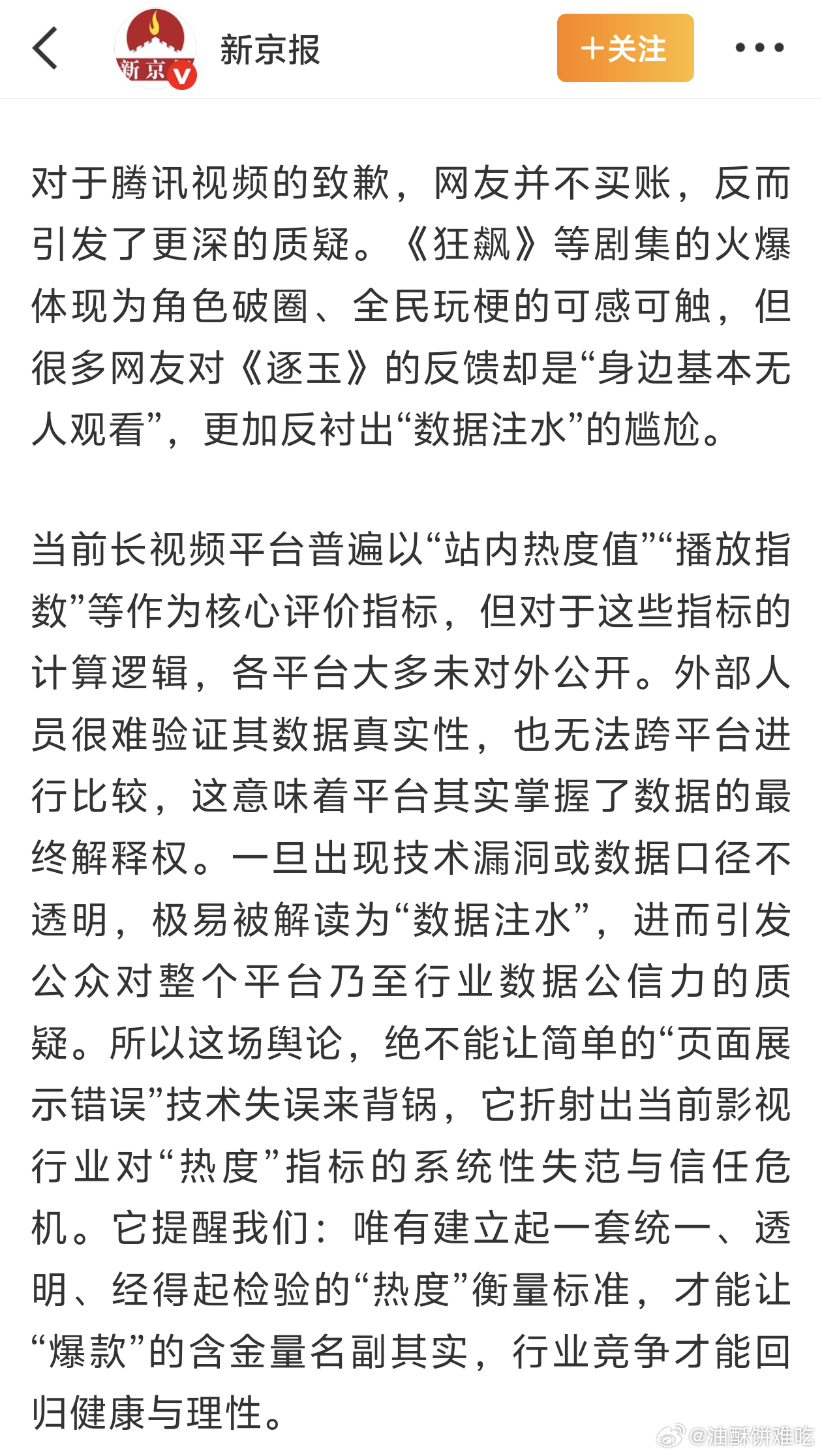 有媒体开始报道了,评论区依旧是🐧🥝联播「现象级爆剧」被骑脸的一天统一平台热度标准才能让爆款名副其实