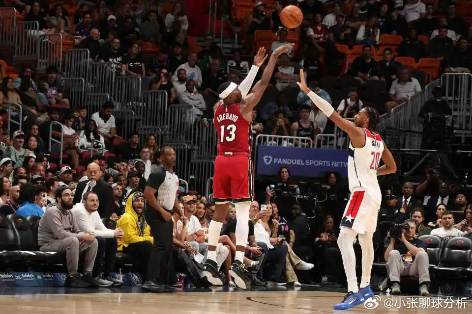 比赛回顾:热火过去5场收获5连胜,奇才过去8场遭遇8连败。本赛季首次交锋热火客场132-101大胜奇才。本场奇才缺少浓眉哥、拉塞尔与乔治等,热火缺少韦尔、希罗、维金斯、鲍威尔、罗齐尔等。阿德巴约首节大爆发表现,他单节打满12分钟16中10,其中外线三分8中5,外加罚球7中6,一人狂轰31分3篮板1抢断1盖帽创造多项纪录,比奇才全队首节还多得到2分,引领热火首节40-29领先奇才。