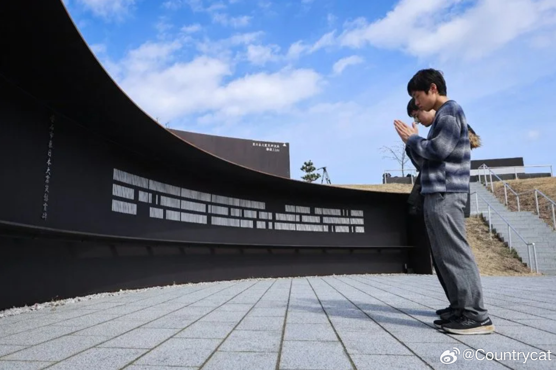 图:日本311大地震今天满15周年,许多灾民仍心有余悸。图为人们在岩手县釜石市釜石祈祷公园(为纪念2011年地震海啸遇难者而建的纪念设施)祈祷。法新社