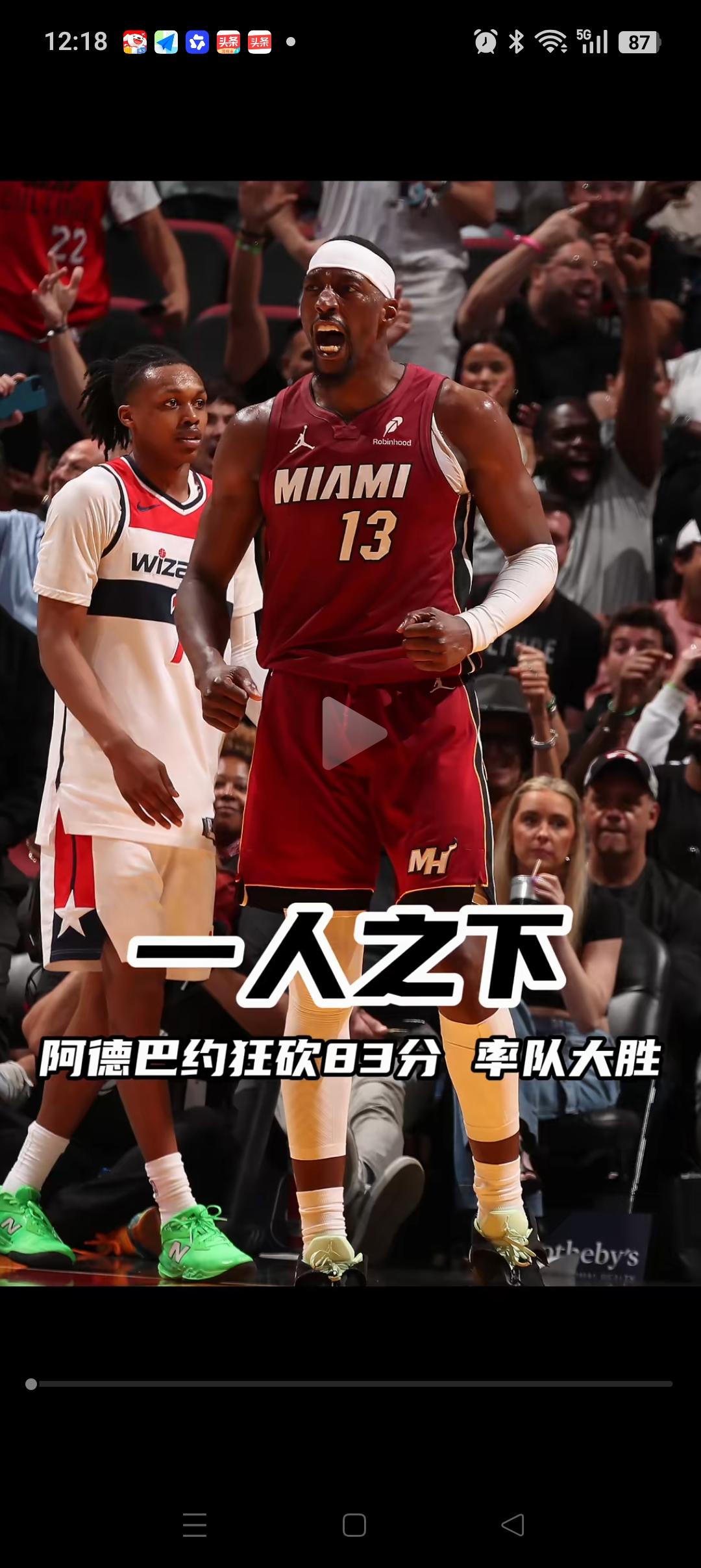 不管含金量如何,就凭这4点阿德巴约不拿83分都难: 1、领先20分以上,比赛已经