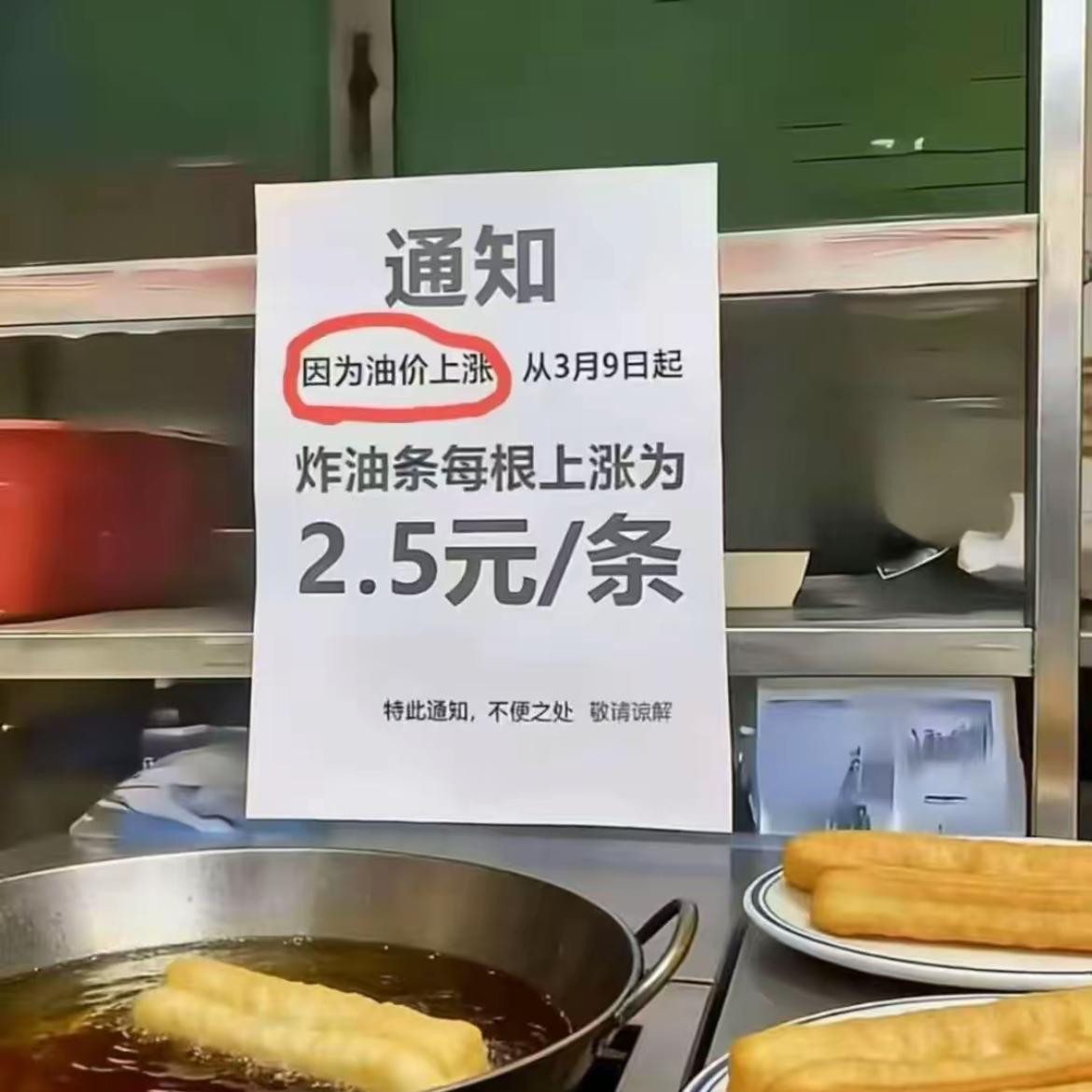 你家油条是用石油炸的吗?中东石油涨价不是食用油涨价吧……