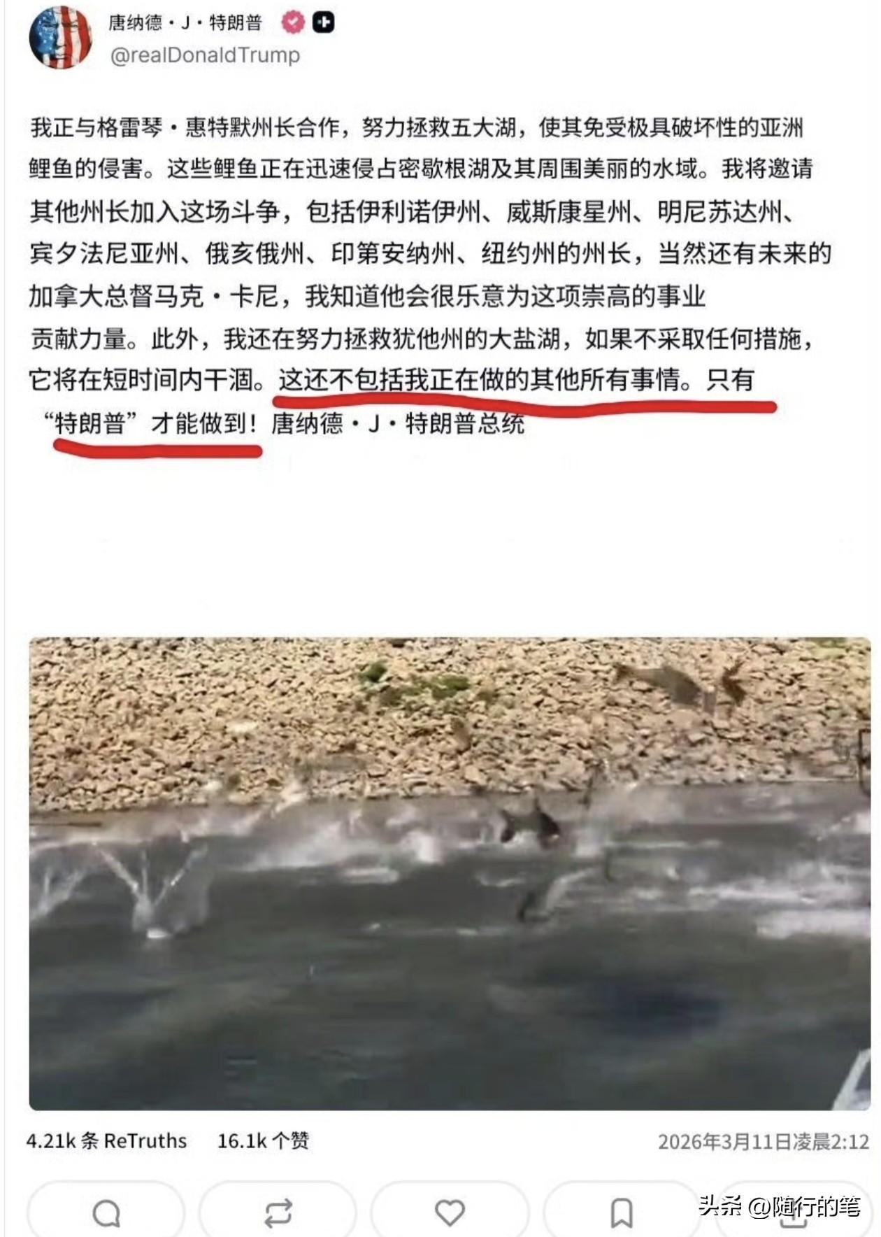 全世界最活跃,最喜欢发文和接受采访的总统就数特朗普了,每天不发文,不接受采访都不正常了,这话题热度妥妥的世界第一。关键是出自于特朗普的言论,根本不敢确信,感觉他脑子里想到什么就说什么,完全不在乎外界对他的看法和评价,像活在自己的世界里一样,说一出是一出。作为一个大国总统,如此作风很任性也很荒谬。