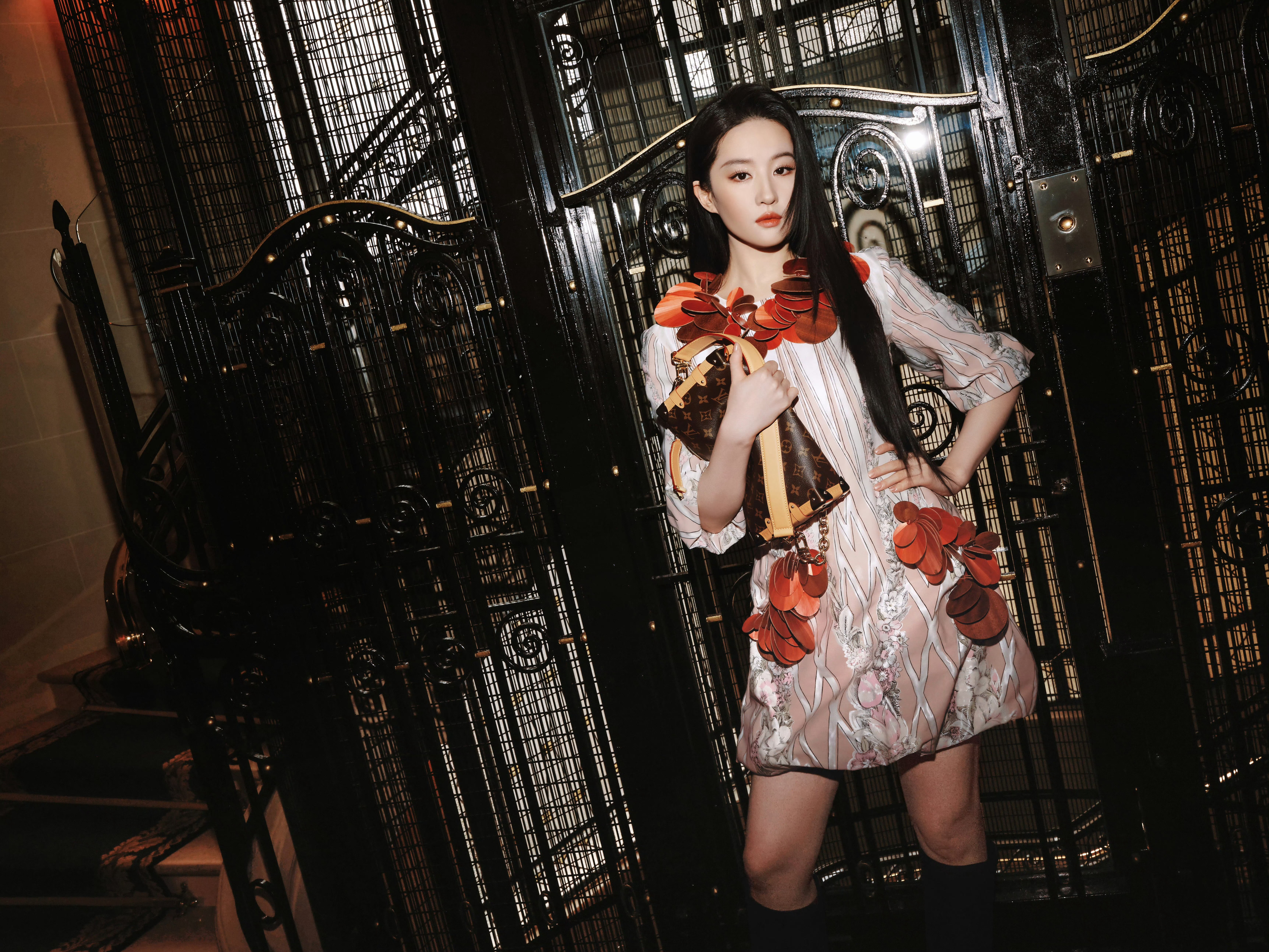 🌸刘亦菲身穿2026春夏条纹花裙+立体木片花瓣装饰,大气又有艺术感,把LV的复古精致和自然感都穿出来了,气场稳得很。