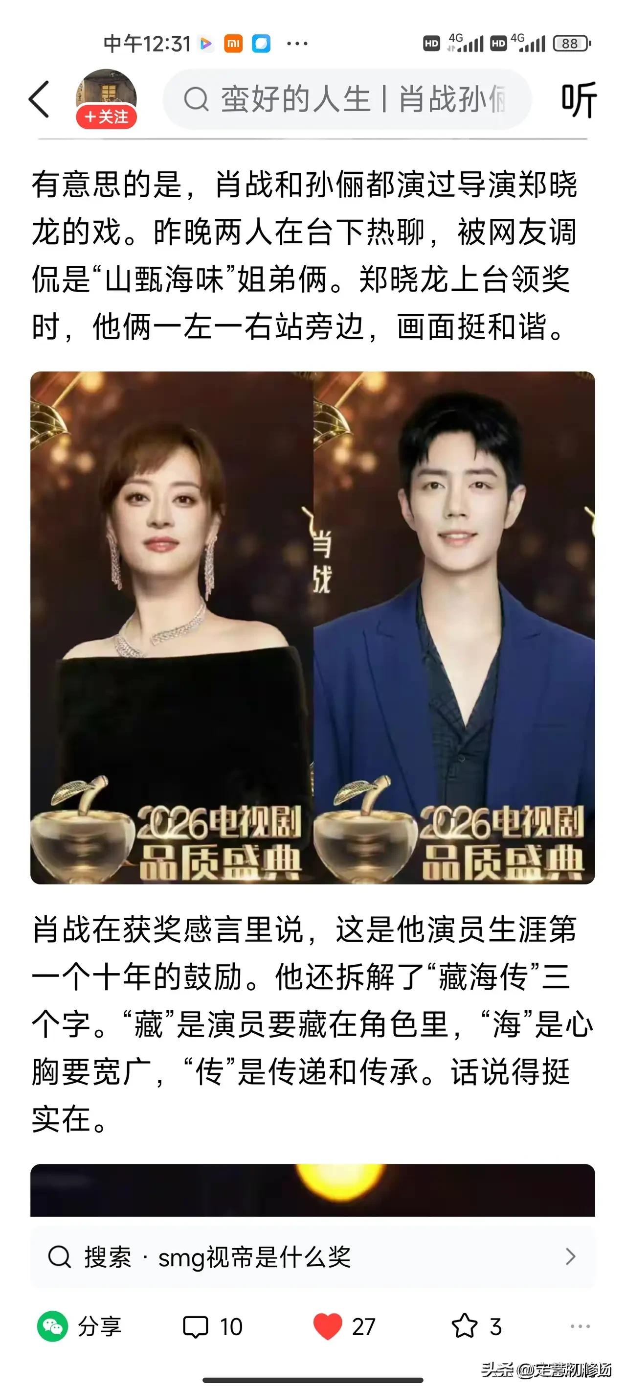 肖战当演员的路本身就很难,挫折不断,20年差点用“粉丝行为,偶像买单”的莫须有罪名断了肖战的演员生涯。肖战默默不语,用一部一部作品赢得了口碑,获得视帝全网无一差评,实至名归。他如今的口碑可是比所有人都来的不容易,用放大镜🔍审视,苛刻挑剔,对流量的偏见,肖战要超出满分💯才能得到大众的一致认可,所以肖战视帝的含金量太高了,肖战的藏海演绎的太成功了,谁都舍不得伤害藏海,这就是演员的魅力,靠角色征服观众