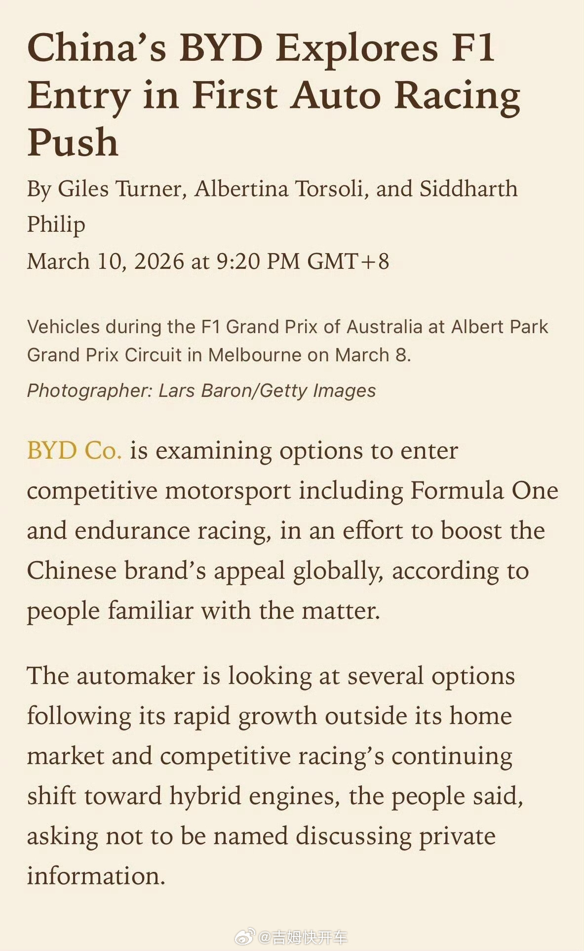 比亚迪或将加入f1等赛事对比亚迪来说加入F1,财务和技术适配可能都不是大问题,而且战略上绝对是利好比亚迪在全球的影响力和知名度的。