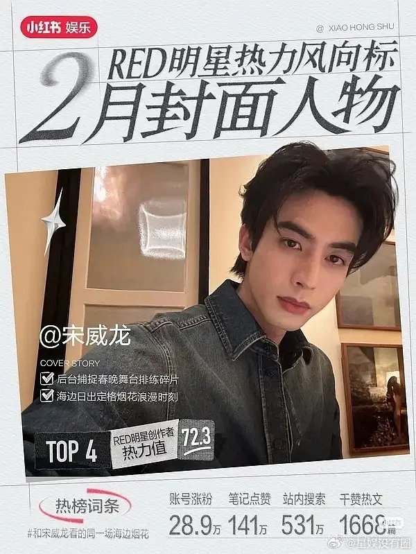 宋威龙连续两个月男明星第一☝️这就是内娱顶流流量吧某些号称同级浓颜的哥,在隔壁都