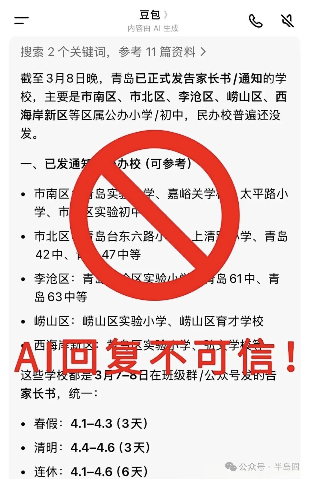 青岛教育部门特别提醒,目前中小学春秋假政策仍在调研筹备阶段,后续将结合本地实际情况科学制定方案,家长切勿轻信和传播各类网传不实信息,中小学假期的具体安排,一切以青岛市教育局官方发布为准。