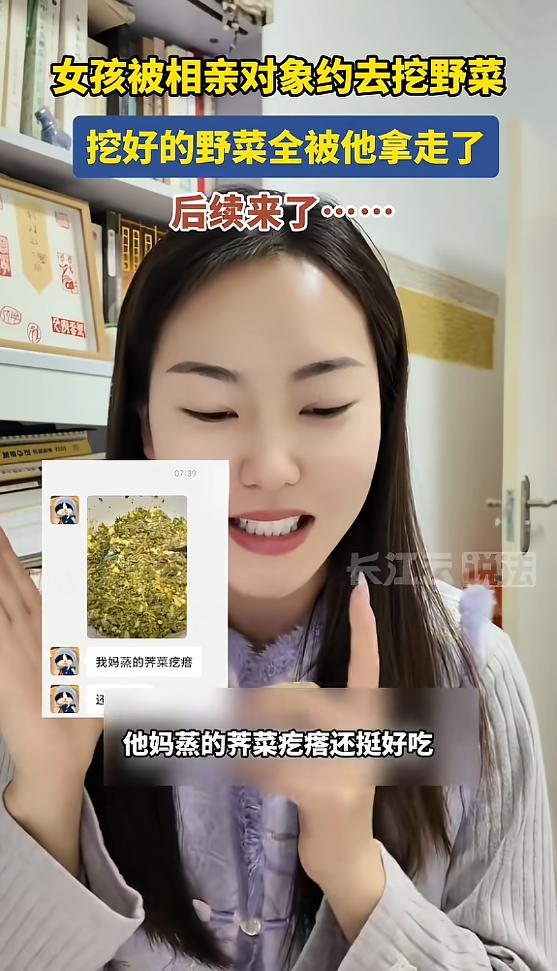 陕西咸阳,女孩被相亲对象约去挖野菜,忙活一下午,男方却把野菜全部拿走。女方一根也没捞着,三天后,男方发来一张照片和一段文字,女孩心中百味杂陈。 这本是一场再普通不过的相亲见面,没有选在喧闹的商场、精致的咖啡馆,男方另辟蹊径,把见面地点定在了郊外的田野里,提议一起去挖当季的野菜。 在很多人看来,这种接地气的安排反而比刻意的约会更舒服,既能避开社交尴尬,也能在相处中看清一个人的真实模样,女孩也没有多想,欣然赴约。 三月的天气回暖,正是野菜疯长的时节,两人到了田间后,便一头扎进地里忙活起来。 女孩全程没有敷衍,弯腰择菜、动手挖菜,跟着男方折腾了整整一下午,手上沾了泥土,胳膊也有些发酸,眼看着挖好的野菜装了满满一大袋,算是实打实付出了体力和时间。 可到了收尾的时候,男方的做法却让人始料未及,他自顾自地把整袋野菜打包好,径直放进了自己的车里,全程没有丝毫犹豫,也没有想过要分给身边一同忙活的女孩哪怕一小把。 女孩当时心里就泛起了别扭,却也没有当场发作,只是默默跟着男方返程,这本不是什么值钱的东西,几斤野菜不值几个钱,可这份被忽视、付出不被在意的感觉,却让她心里堵得慌。 她原本觉得,男方选择挖野菜这种朴实的约会方式,应该是个踏实、懂得顾及他人的人,没想到细节之处,却暴露了全然自私的一面。 本以为这场尴尬的相亲就此翻篇,女孩也没打算再和对方有交集,可三天后,男方的一条消息,更是让她心里五味杂陈。 对方发来一张实拍的照片,盘子里摆着刚蒸好的荠菜疙瘩,还附带了一句文字,言语间满是炫耀,丝毫没有提及当天挖野菜时女孩的付出,也没有半点歉意或是分享的诚意。 这件事看似只是一桩鸡毛蒜皮的小事,却戳中了很多人对相亲、对人际交往的痛点,相亲本就是互相了解、彼此尊重的过程,比起家境、外貌,人品和处事态度才是最关键的。 挖野菜不过是一次小小的协作,男方却只想着独占成果,完全无视同伴的付出,连最基本的分享意识都没有,这种骨子里的自私,远比野菜不值钱更让人失望。 人与人相处,从来都藏着看不见的分寸感,越是小事,越能看清一个人的底线。 或许男方觉得野菜不值钱,没必要分给对方,又或许他根本没把女孩的付出放在眼里,可正是这种不经意的举动,恰恰暴露了他的格局和待人之道。 相亲看的从来不是一场约会的排场,而是细节里的温柔与尊重,连这点小事都做不到的人,又怎能指望往后相处里能懂得体谅和分担呢。 大家对此怎么看?欢迎评论区留下您的观点!