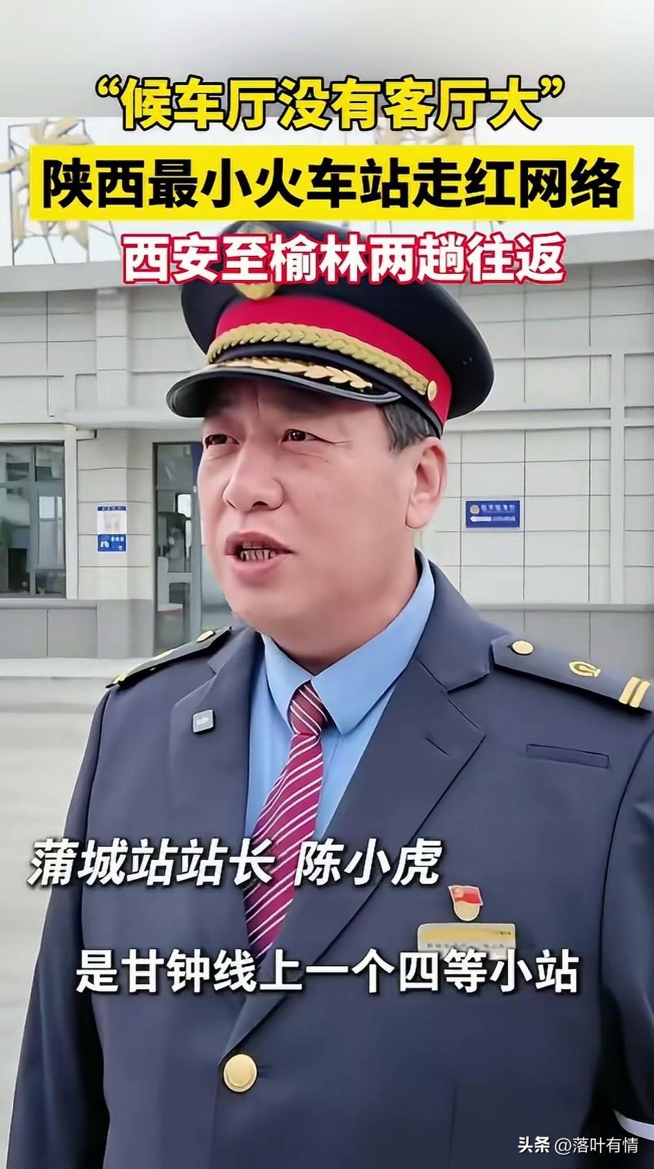 陕西的蒲城站火了, 原因就是这个火车站非常的, 候车厅还没有你家的客厅大, 这个车站已经有50年的历史, 每天只有两趟车在这里停, 还是方便了很多人坐火车, 有些地方的火车站就是很方便, 这里的火车站之所以会火, 就是因为它的小, 它不像别的地方的火车那么高大上。 但是却实实在在解决了当地居民出行的问题,这可以说是陕西最小的火车站了,一张照片直接让他封神, 很多人都把他当成了网红,打卡, 连车站的工作人员都不知道它为什么能火?大家觉得这样的火车站啊,会一直存在吗?