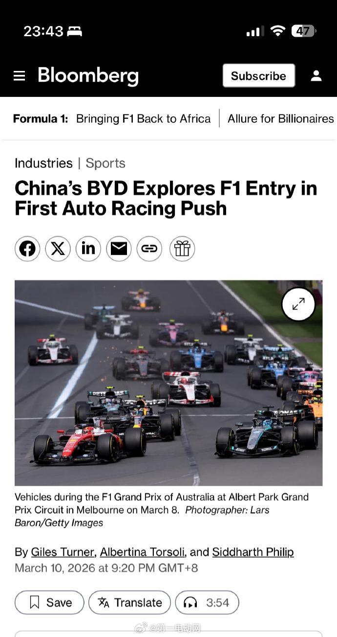 据彭博社报道,比亚迪正在考虑进入F1和耐力赛等顶级汽车赛事 比亚迪正考虑进军F1