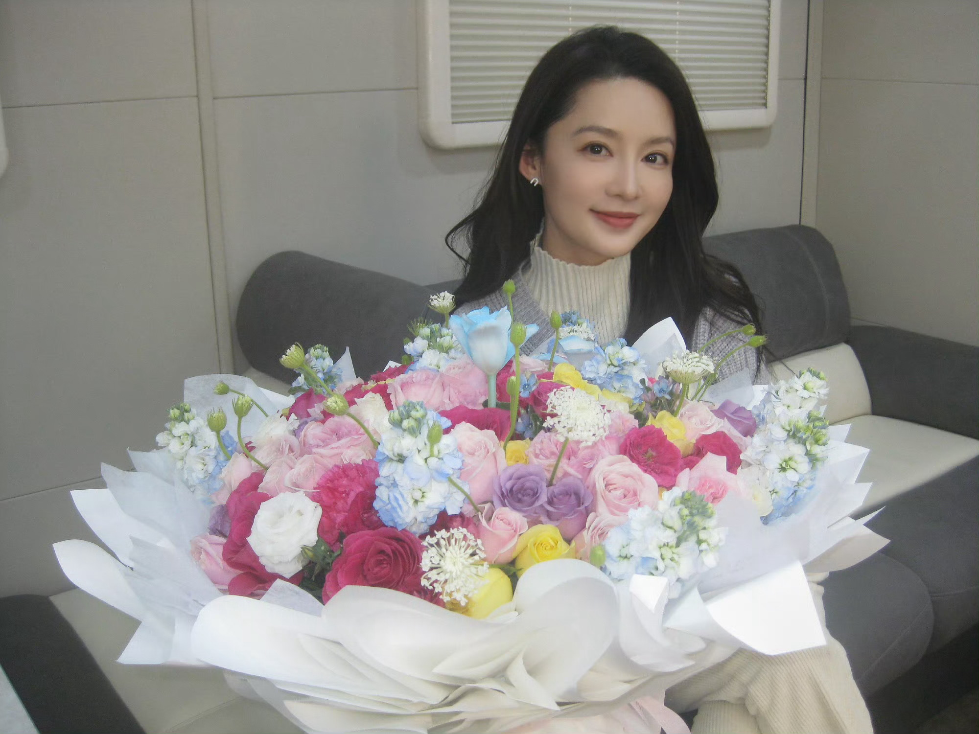 李沁收到来自春天的花李沁捧花营业照 李沁捧花营业照,收到来自春天的花,明媚灿烂活力满满的开工啦