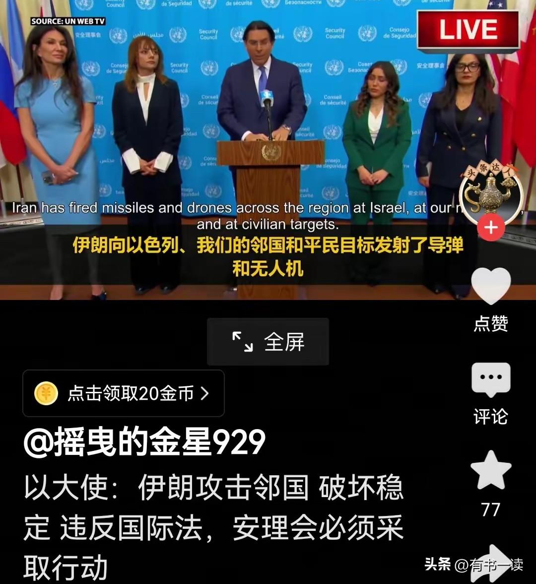 在伊朗强势反击后,以色列现在终于知道要遵守国际法了,急匆匆跑到联合国“告状”,控诉伊朗反击违反规则。这副模样实在讽刺:发动侵略、狂轰滥炸的时候,怎么不提国际法? 以色列驻联合国代表丹东最近在安理会上“声泪俱下”,控诉伊朗导弹袭击平民区是“恐怖主义”,还搬出《联合国宪章》第51条,说以色列炸伊朗是“预警性自卫”,合法合规。 我听了只想笑:这脸皮,比铁还厚!打不赢了,才想起要讲“规矩”?你们发动侵略战争、把炸弹扔到伊朗小学里的时候,怎么没见你们提一句国际法? 说到底,这就是赤裸裸的霸权逻辑:我的安全是安全,你的命就不是命;我炸你是自卫,你反击就是“恐怖主义”。这种把戏,骗得了谁? 国际社会的眼睛是雪亮的,这种“贼喊捉贼”的戏码演得再多,也掩盖不了侵略的本质。 别以为换个词儿,强盗就能变成绅士,这世道,公道自在人心!