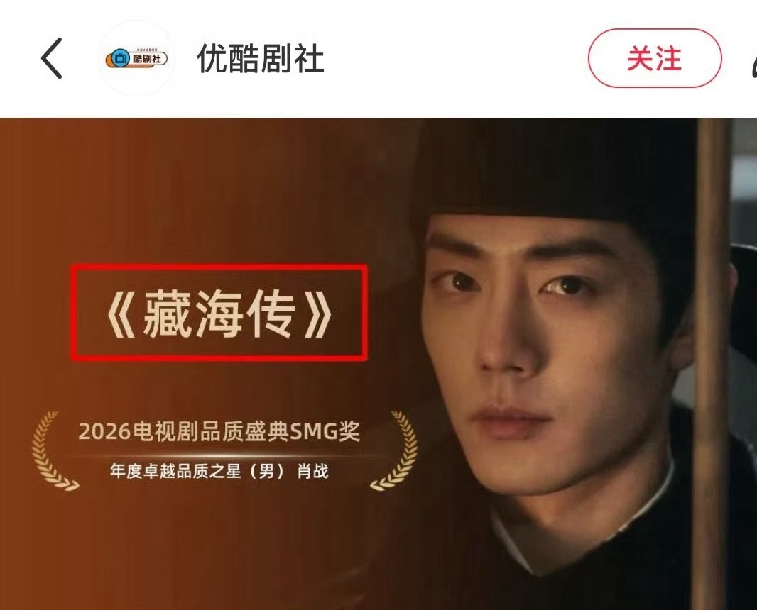 肖战年度卓越品质之星肖战smg视帝 年度剧王👑《藏海传》去年凭实力登顶优酷七麦峰值!还是全年最冷🥶的档期!40集仅38天热播期!播出👖日活直接超越🥭近🥝优酷拉新/热度史冠🏆➨今年肖战凭实力获得SMG最年轻视帝👏实至名归.➨《藏海传》是去年唯一破30亿➕播放量的现象级爆剧!火爆全球🌐夯爆了👏电视剧品质盛典藏海传结算画面