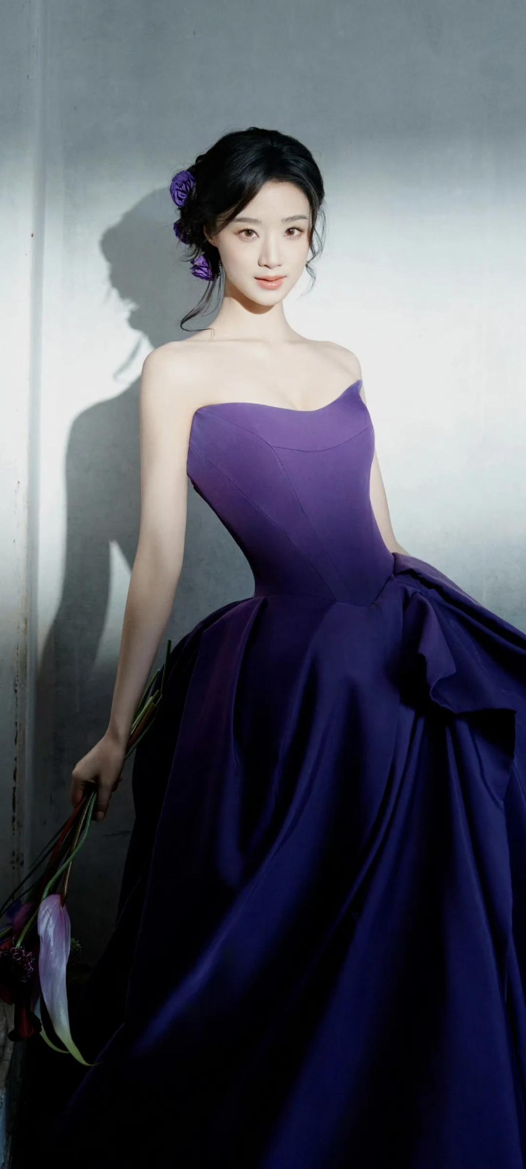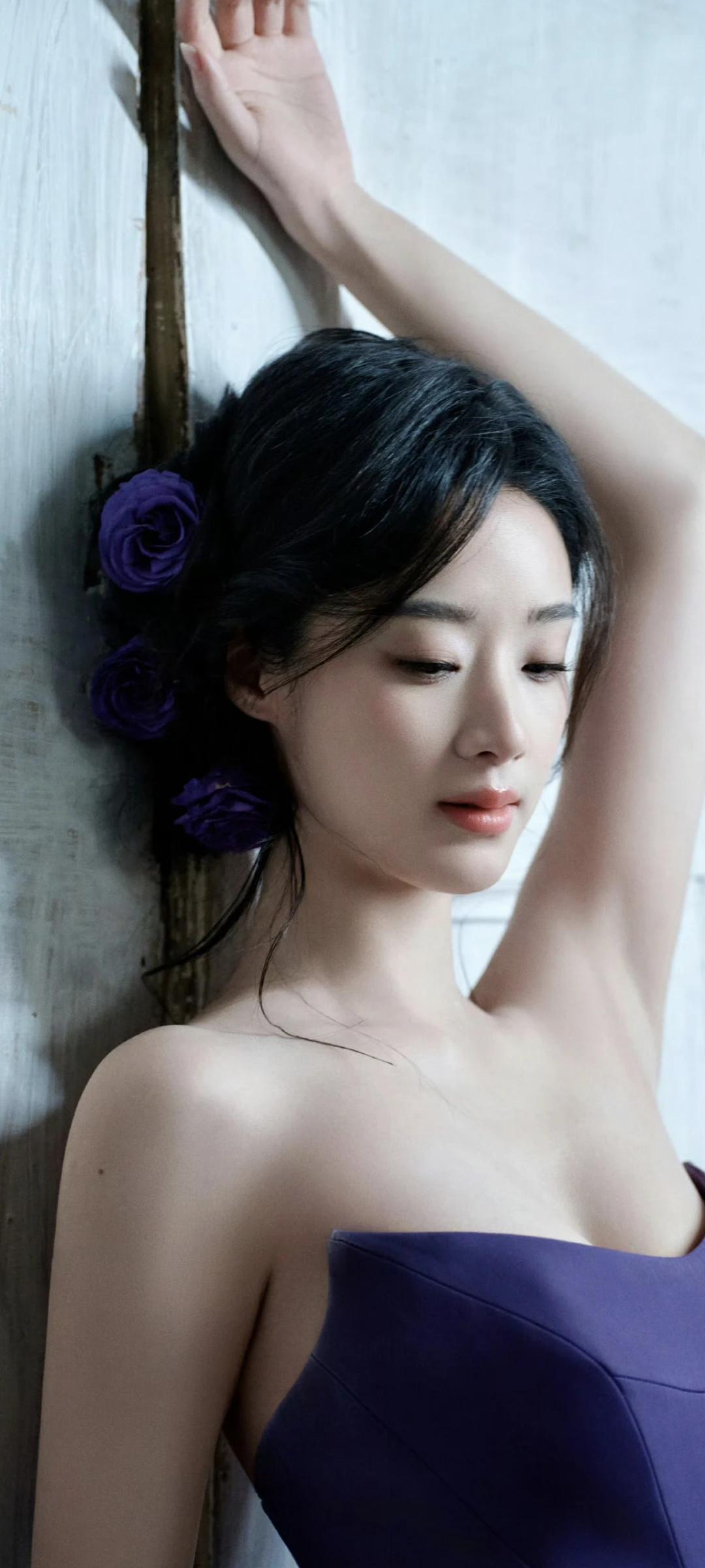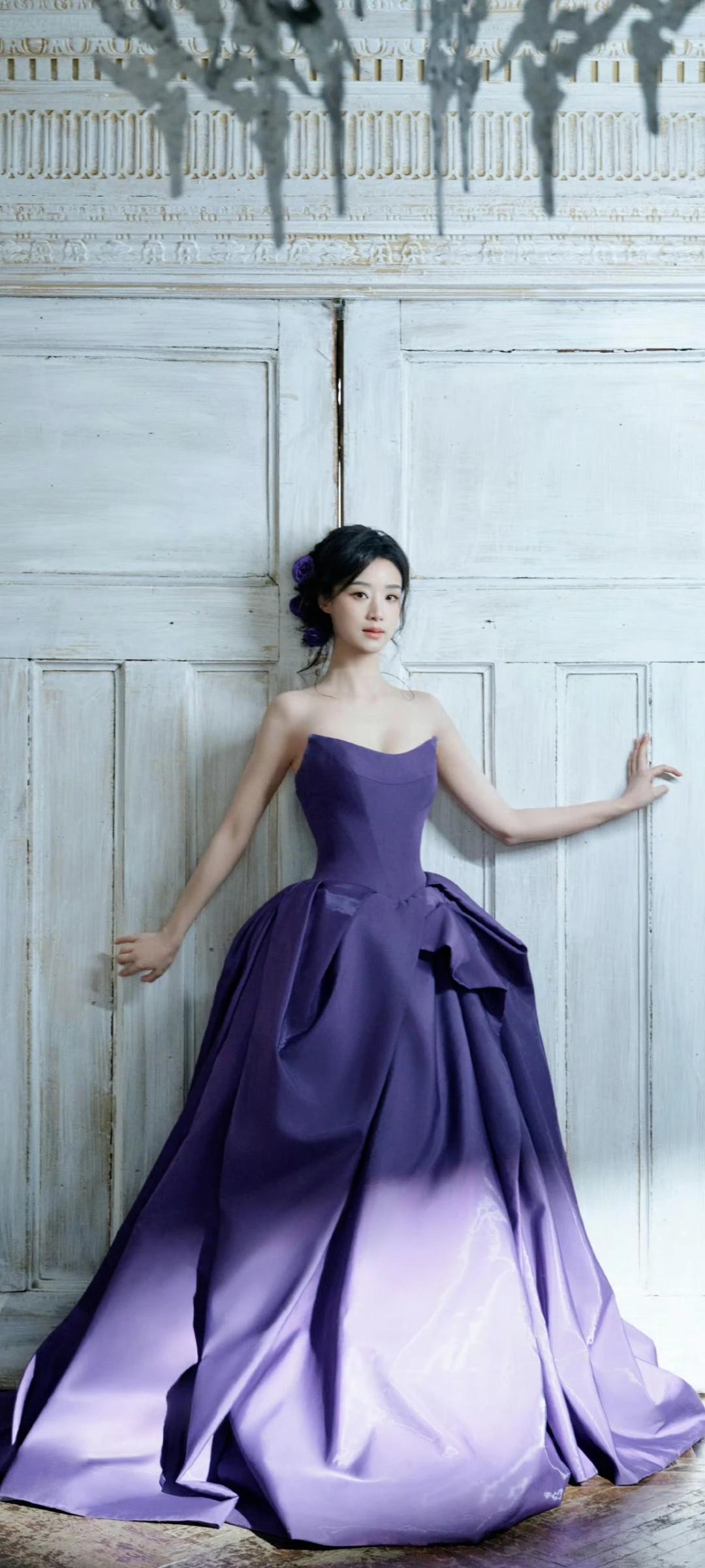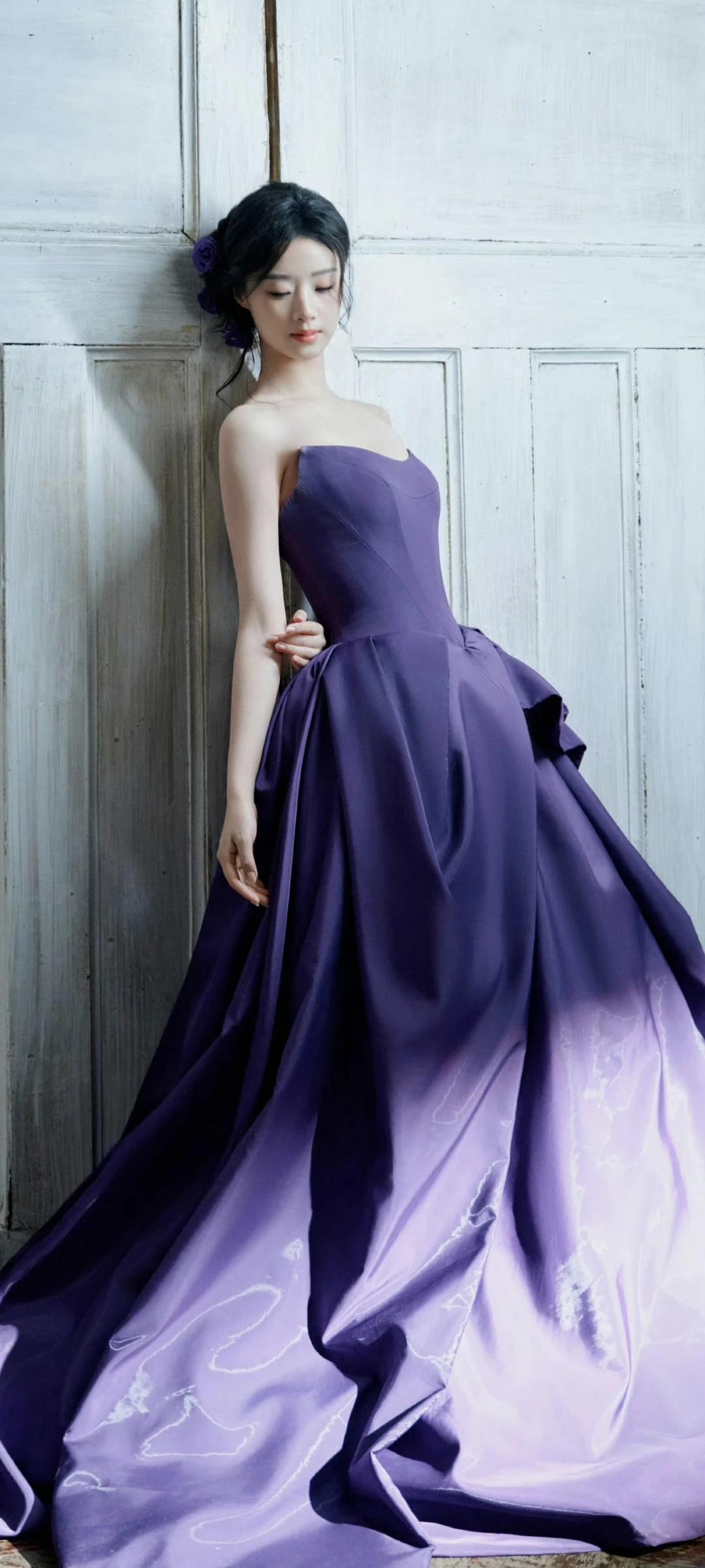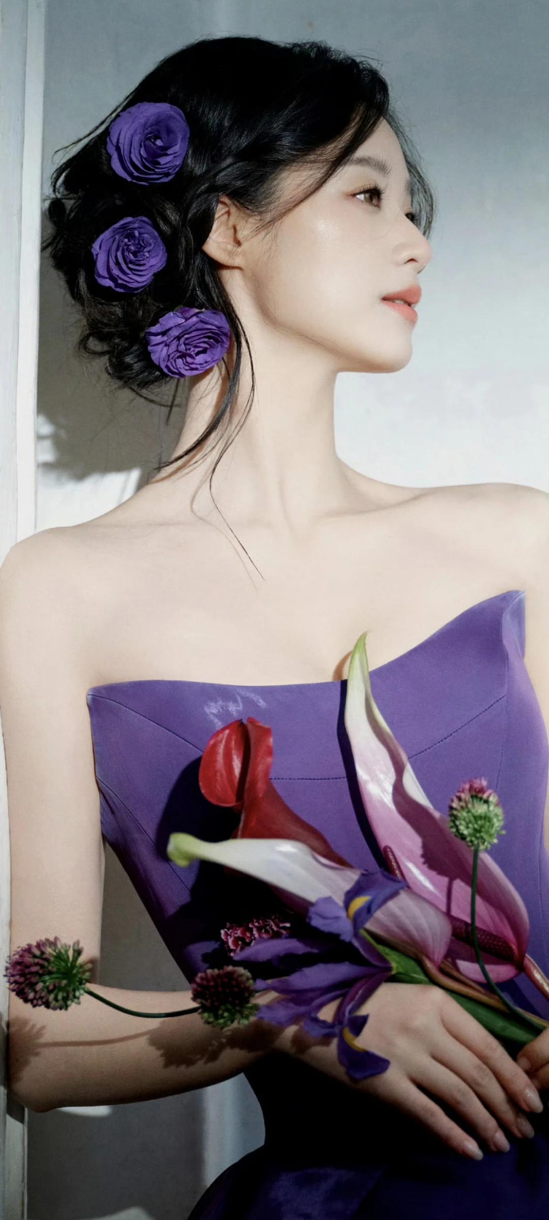 王小亿壁纸~优雅永不过时!紫色抹胸裙搭配花饰发型,美得让人说不出话。