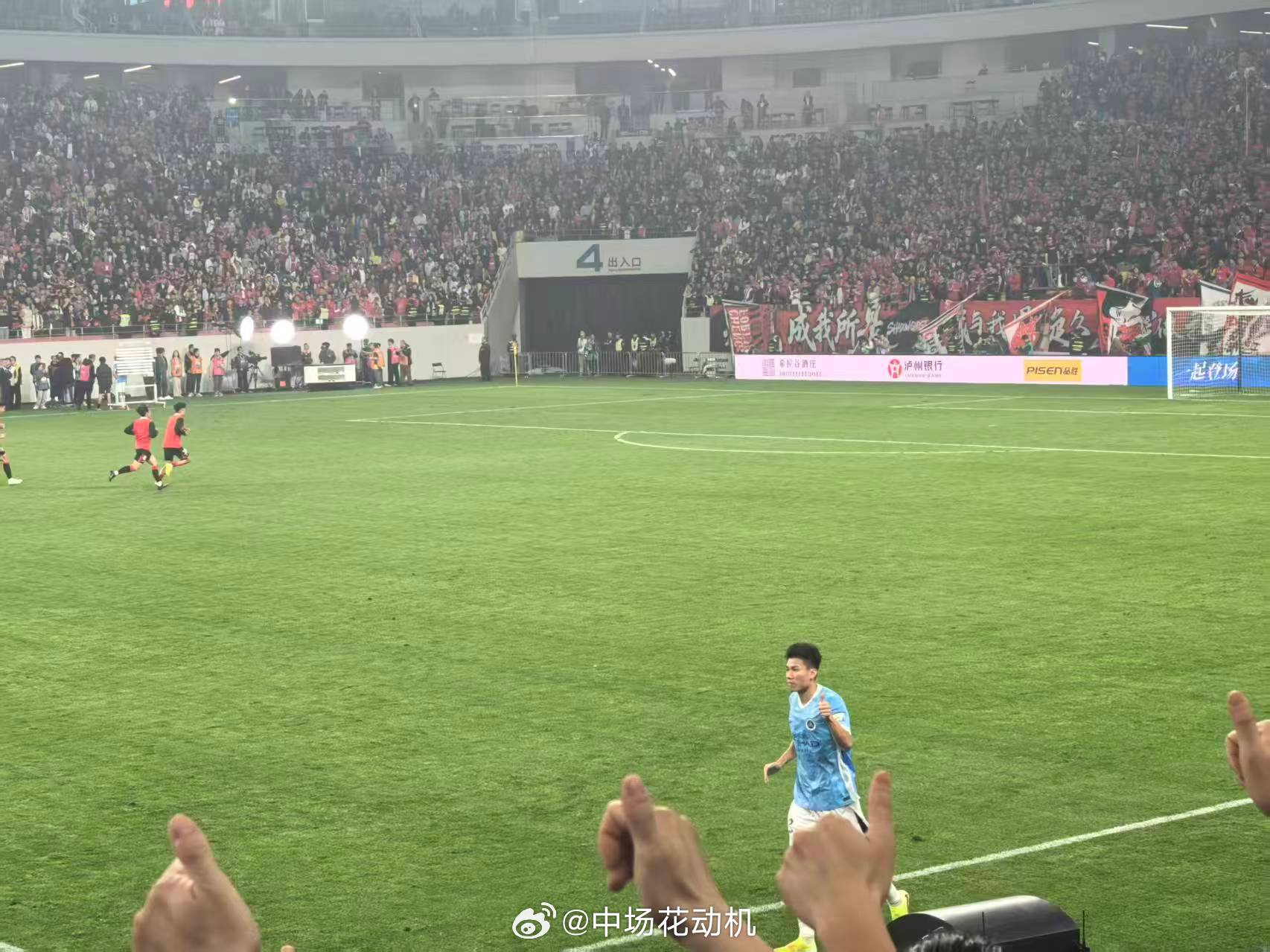 三名曾为成都蓉城效力的深圳新鹏城球员胡睿宝、杨一鸣、周定洋,赛后绕场一周,向全体球迷表达谢意!中超联赛成都蓉城我的主队我的城