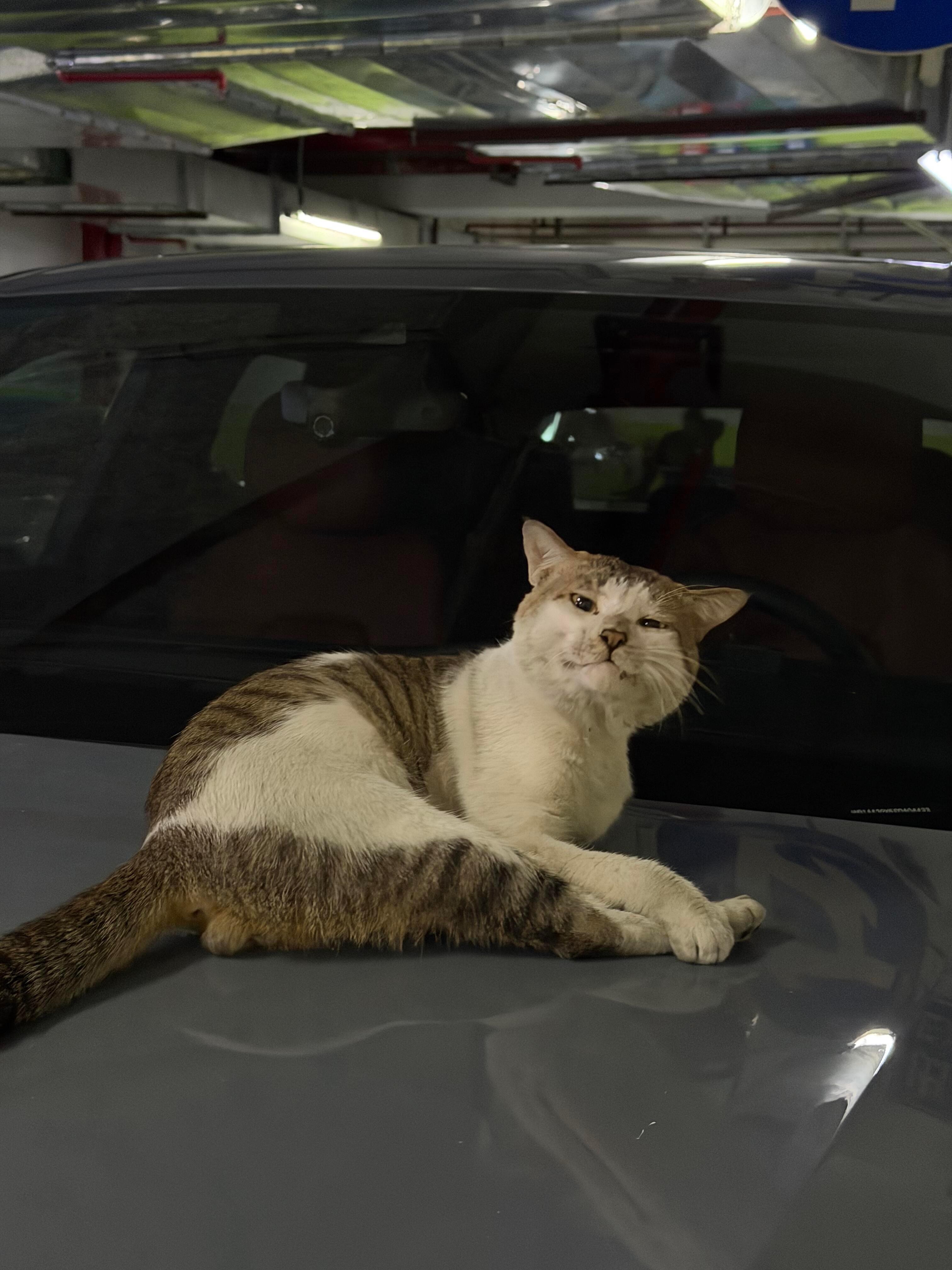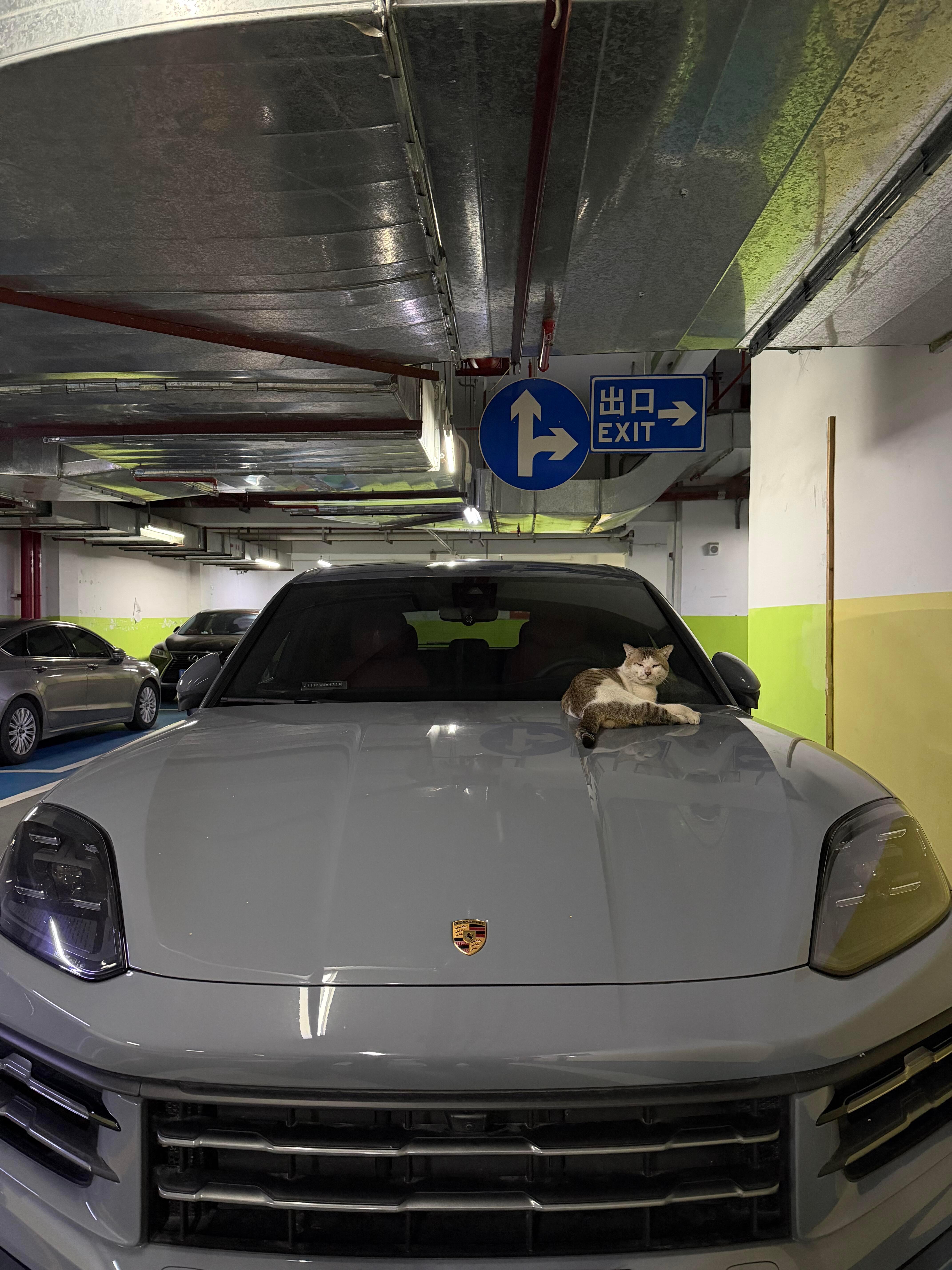 又在车库遇到流浪猫躺豪车上了