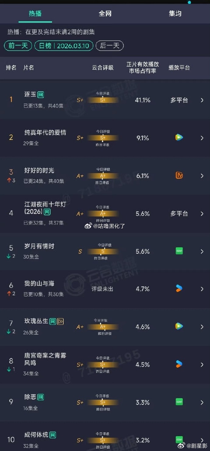 逐玉今日云合41.1% 田曦薇张凌赫新剧云合41.1%这个收视率真的是太牛了呀,热度也是一路飙升啊,今天晚上记得来追剧啊田曦薇张凌赫新剧云合41.1%