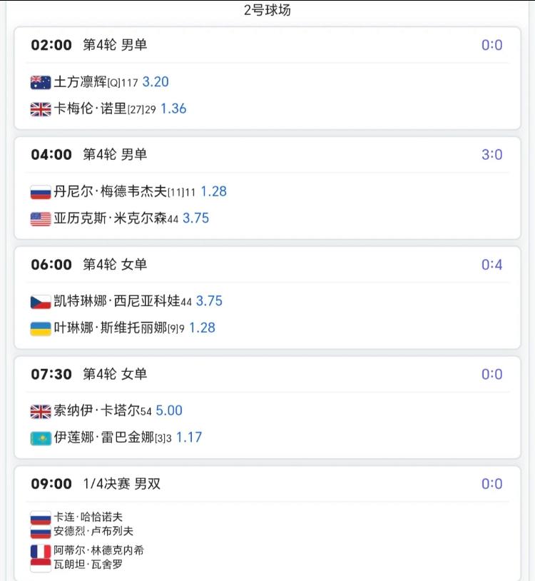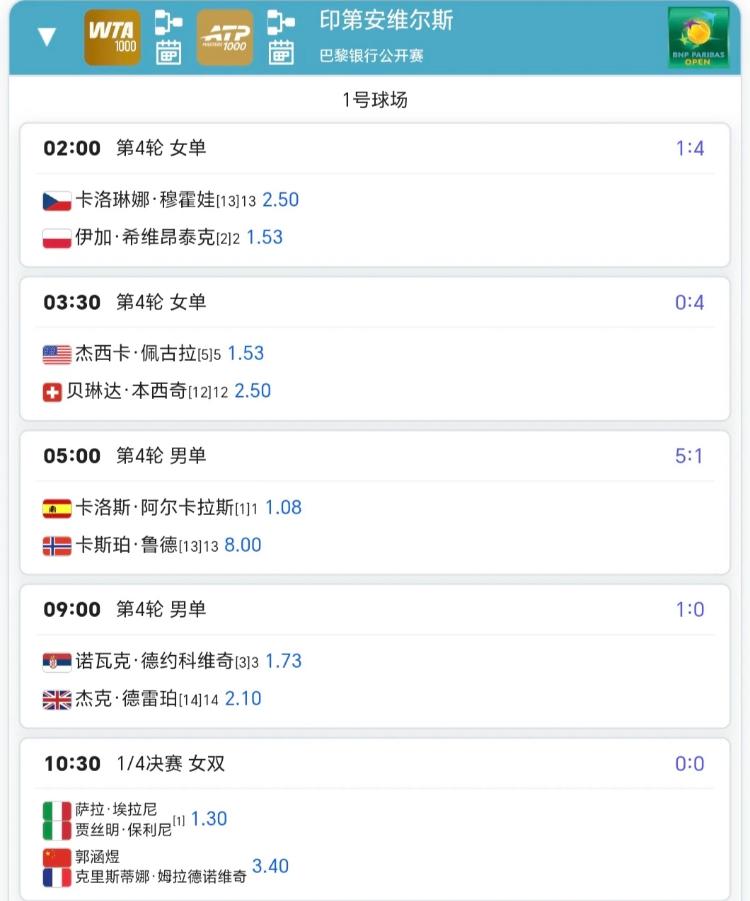 3月12日印第安维尔斯赛程!! 你会选择看哪一场呢?我今晚优先熬夜看朱婷的欧冠1/4,明早7:30看莱巴金娜和卡塔尔那场,接着9:00看德约科维奇和德雷珀这场,至于阿尔卡拉斯和鲁德这场,阿尔卡拉斯没啥悬念,所以如果起得来就看[我想静静]….