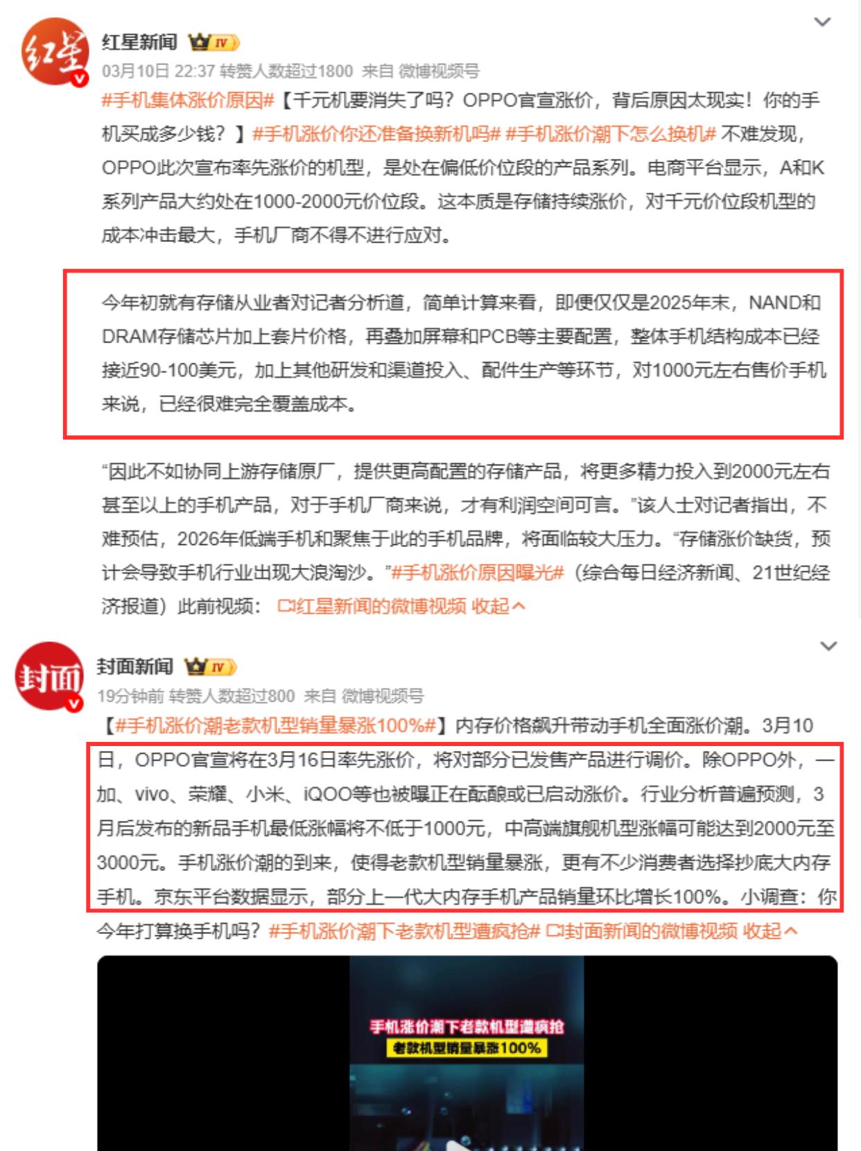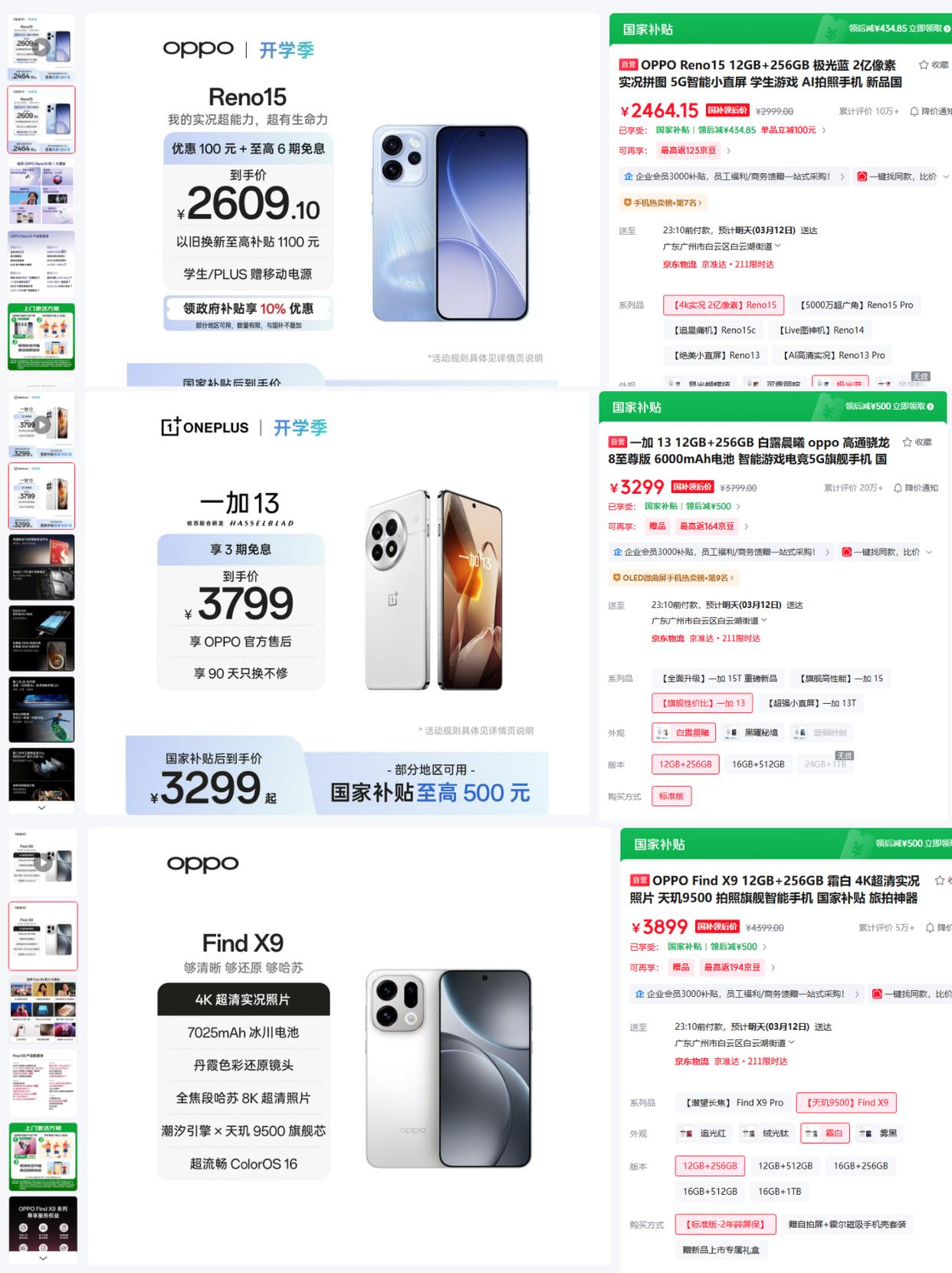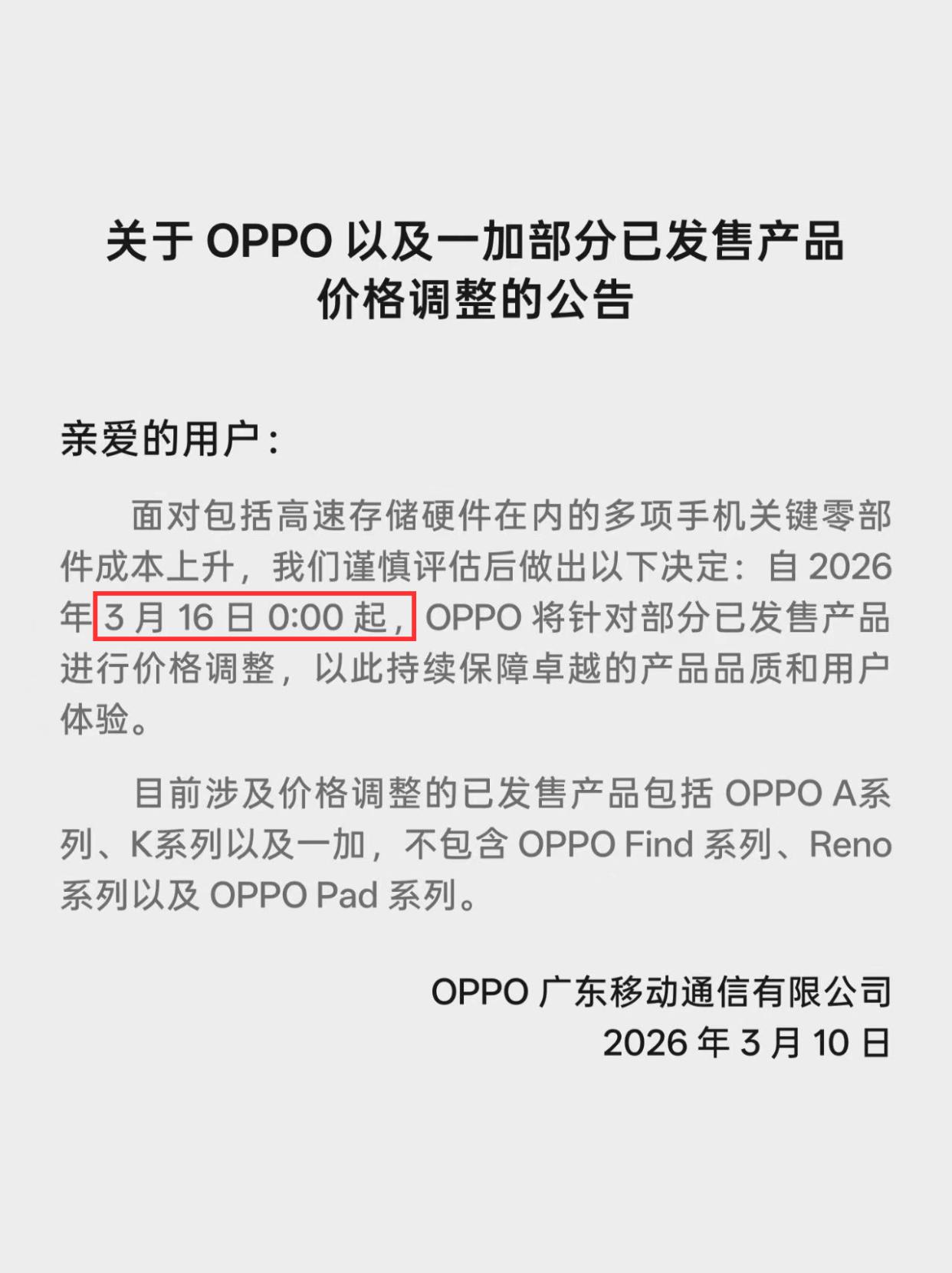 2026手机看来都要涨价了!早买早享受啊! 2026年各大手机品牌几乎集体涨价了,三星S26系列至高涨了1600,其他家也或多或少调价了!OPPO也在近日发布公告调整部分系列价格! 不过值得注意的是,3月16日前下单时原价,OPPO给了近一星期的缓冲期,也算是很有企业担当了,不搞突袭涨价,提前预告消费者挺好,也是给了有需求换机的用户一个购买窗口期! 所以说你的旧手机已经卡顿的话,我建议是趁着没涨价前赶紧换掉,现在就是最佳入手时期!尤其是那些已经发布还未知涨价的机型!不然后面涨了就只能心疼了。 比如最新的Reno15系列或者是Find X9系列,Reno15现在2464起,Find X9现在3899起,但我更建议买大内存521GB,可以保证未来几年的使用,四五年都不用换。 或者是买去年的Find X8、一加13等,性能和配置依旧很顶,而且经过一年时间价格已经非常有吸引力了,中端机的预算就能拿下,用个几年不成问题! 总而言之就一句话:趁着16日前窗口期买OPPO手机,稳稳用个几年等内存涨价潮过去,早买早享受啊!