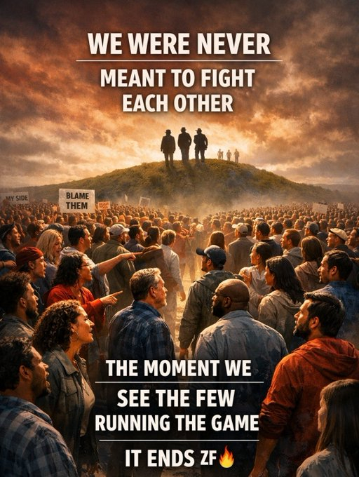 The moment humanity realizes it was never us versus each other… it was always us versus a small few who needed us divided… the entire game collapses.