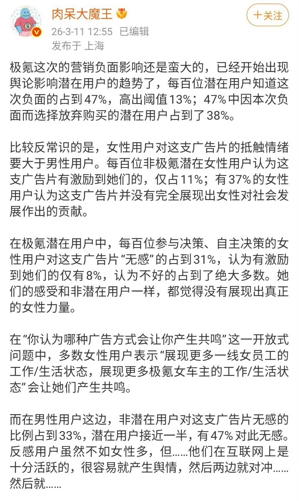 极氪这次女生节营销的负面真有这么大?小调研:你们有没有看过那个视频的?看完了是什