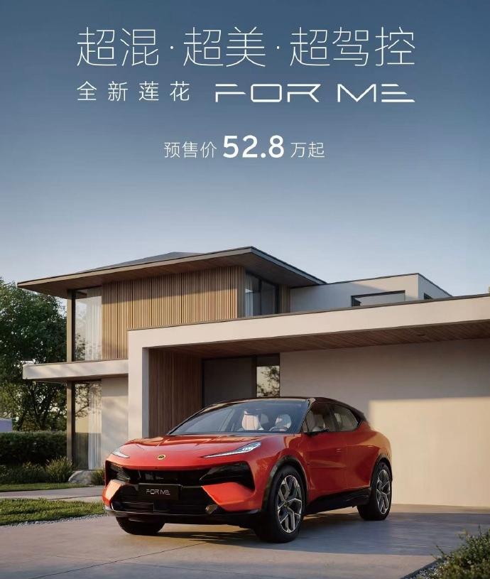 【52.8万元起,莲花FOR ME开启预售,性能对标300万!】 日前,汽车焦点从莲花汽车官方处获悉,全新莲花FOR ME正式开启预售,熟悉莲花的小伙伴应该都知道,这款产品其实就是莲花ELETRE插混版更名而来的,新车将会推出两款配置车型,预售价格分别为52.8万元以及58.8万元,不得不说这价格还是相当给力的。 那在造型设计上莲花FOR ME并没有特别多的调整,依然保持着非常科幻激进的设计语言,大尺寸进气口配合分体式灯组设计给人相当凌厉的效果,而且全车带有大量风道口的设计,甚至还配备上隐藏式激光雷达,带来更加低的风阻系数。尺寸部分,莲花FOR ME长宽高分别为5103/2019/1636mm,轴距为3019mm。 作为重点,莲花FOR ME将搭载双电机混动系统,发动机效率表现非常突出,而且还是百万内唯一标配主动防倾杆、6活塞卡钳以及120公斤净下压力空力套件的车型。根据官方数据来看,基于900V高压平台打造而来的莲花FOR ME,纯电续航里程达到420公里,2.0T插混系统即便是在馈电状态下,也能拥有足够强劲的动力爆发。【来自懂车帝车友圈】