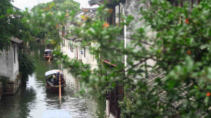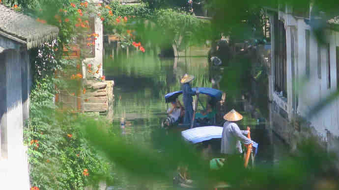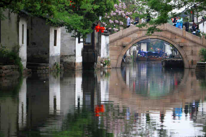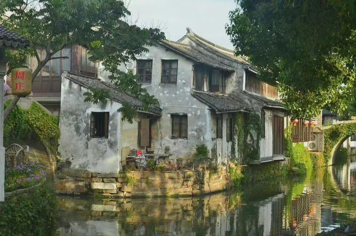 阳春三月的周庄,那石桥、流水、小船、花儿、绿柳、人家...形成了一幅柔美的江南水墨画。