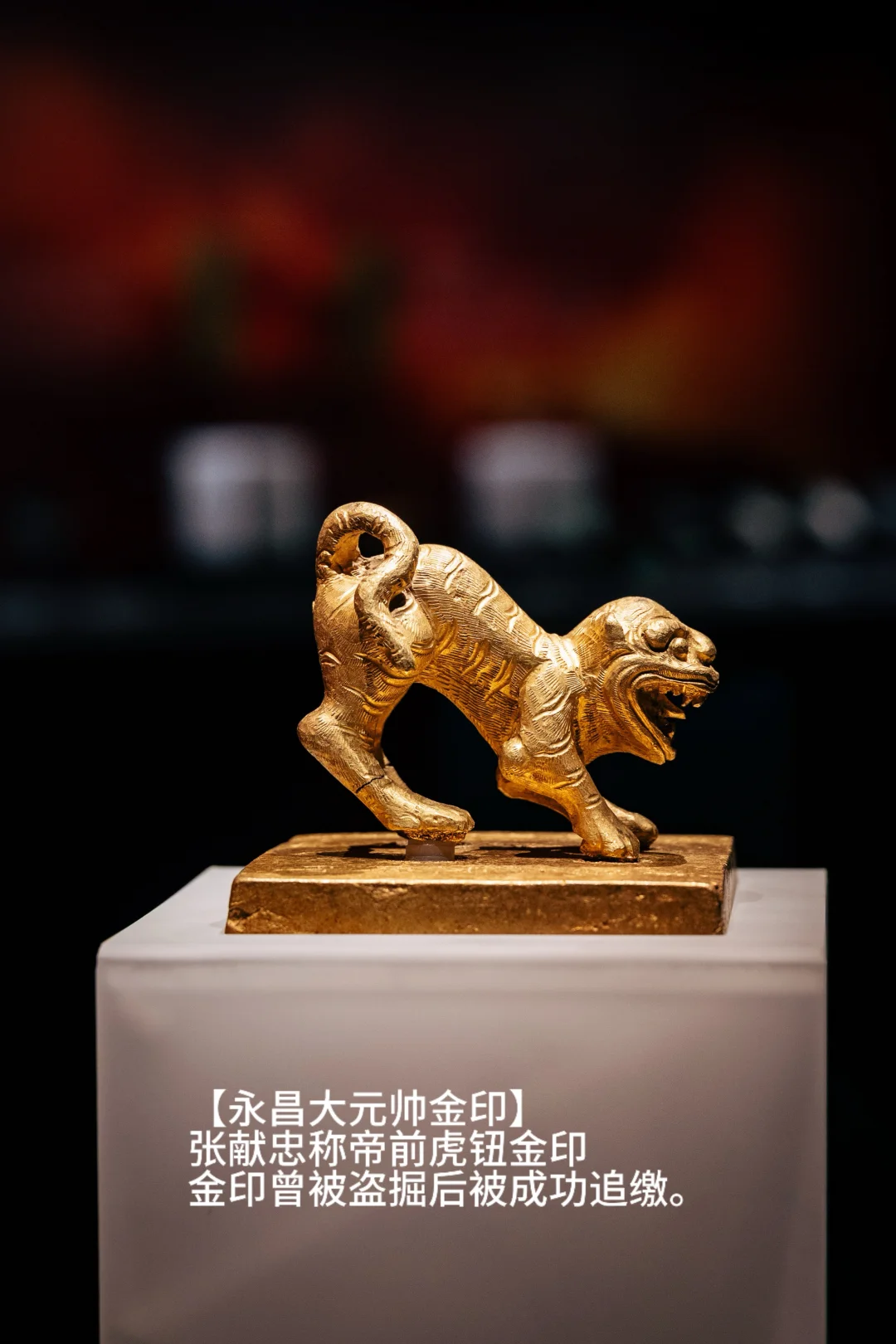 ❷永昌大元帅金印:张献忠称帝前虎钮金印,金印曾被盗掘后被成功追缴。