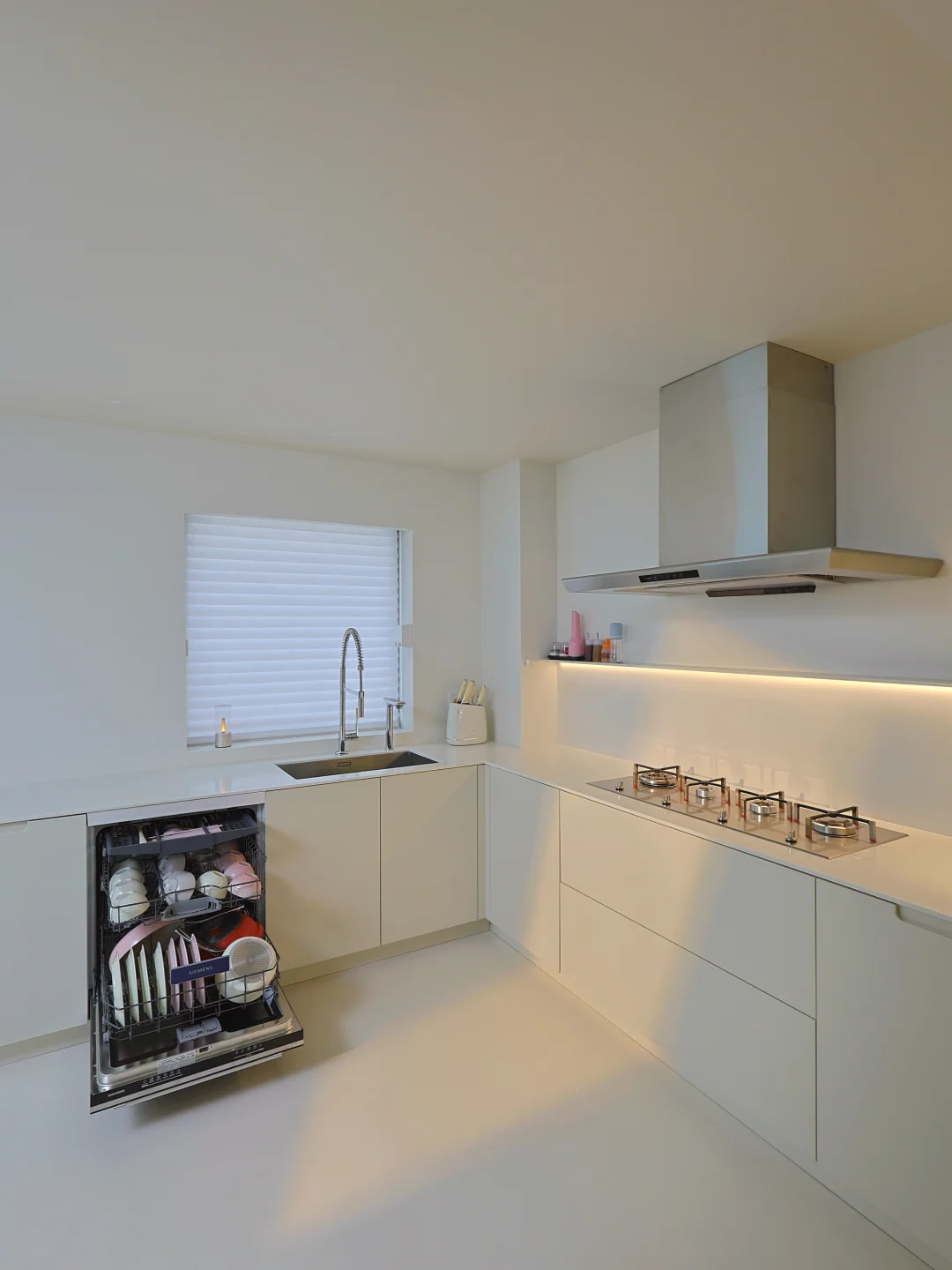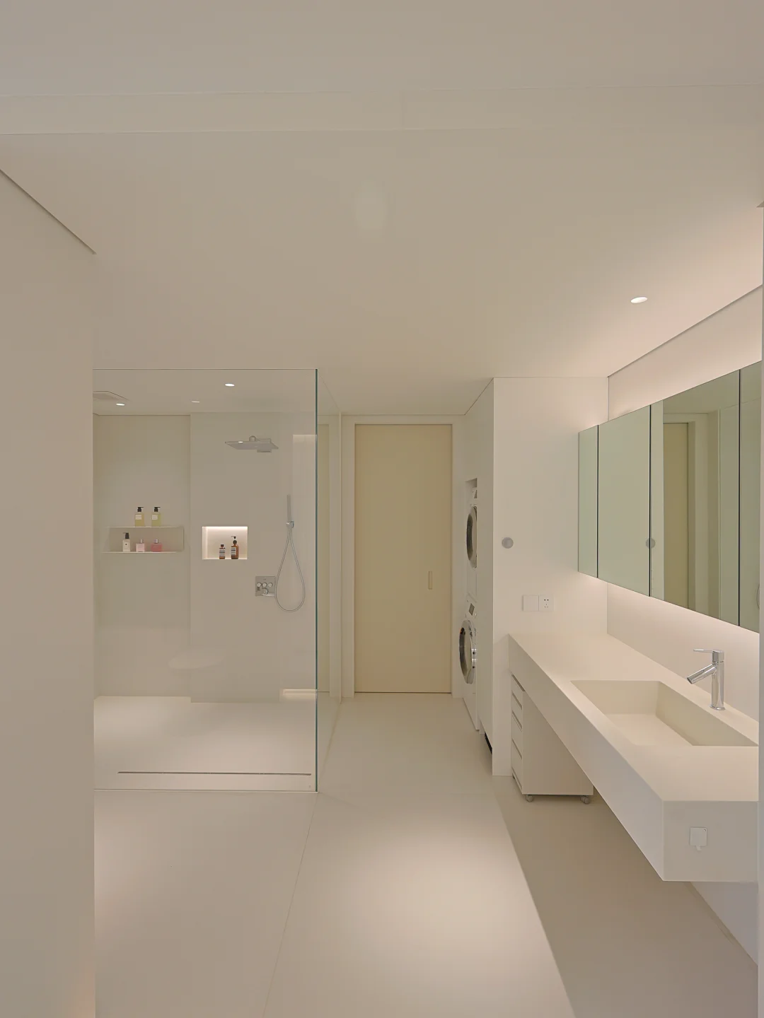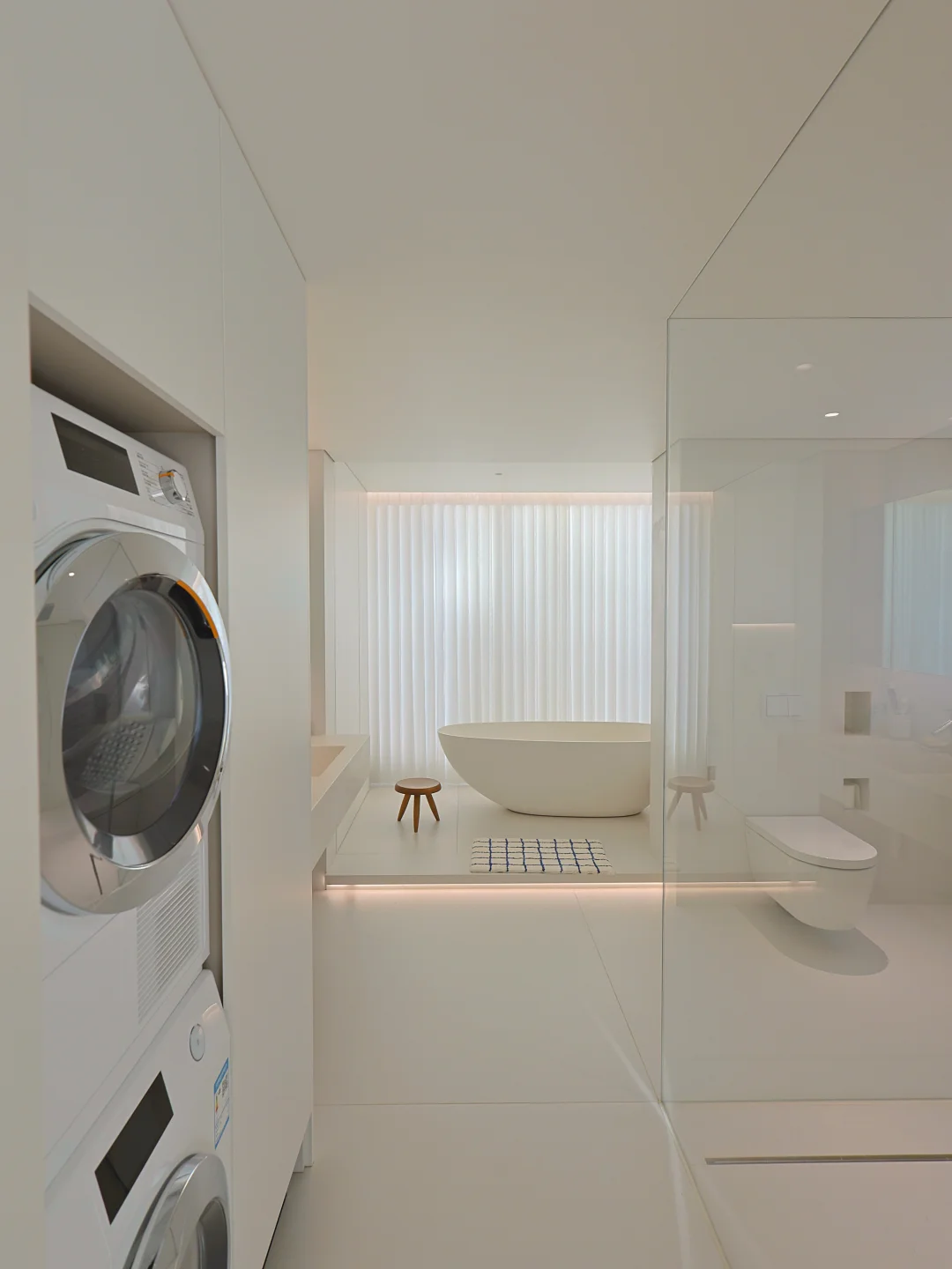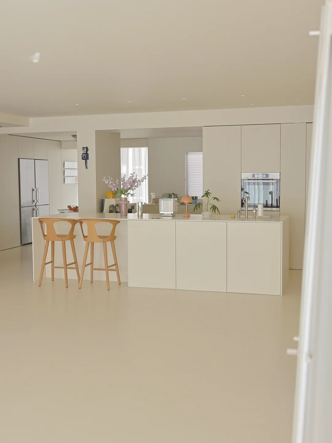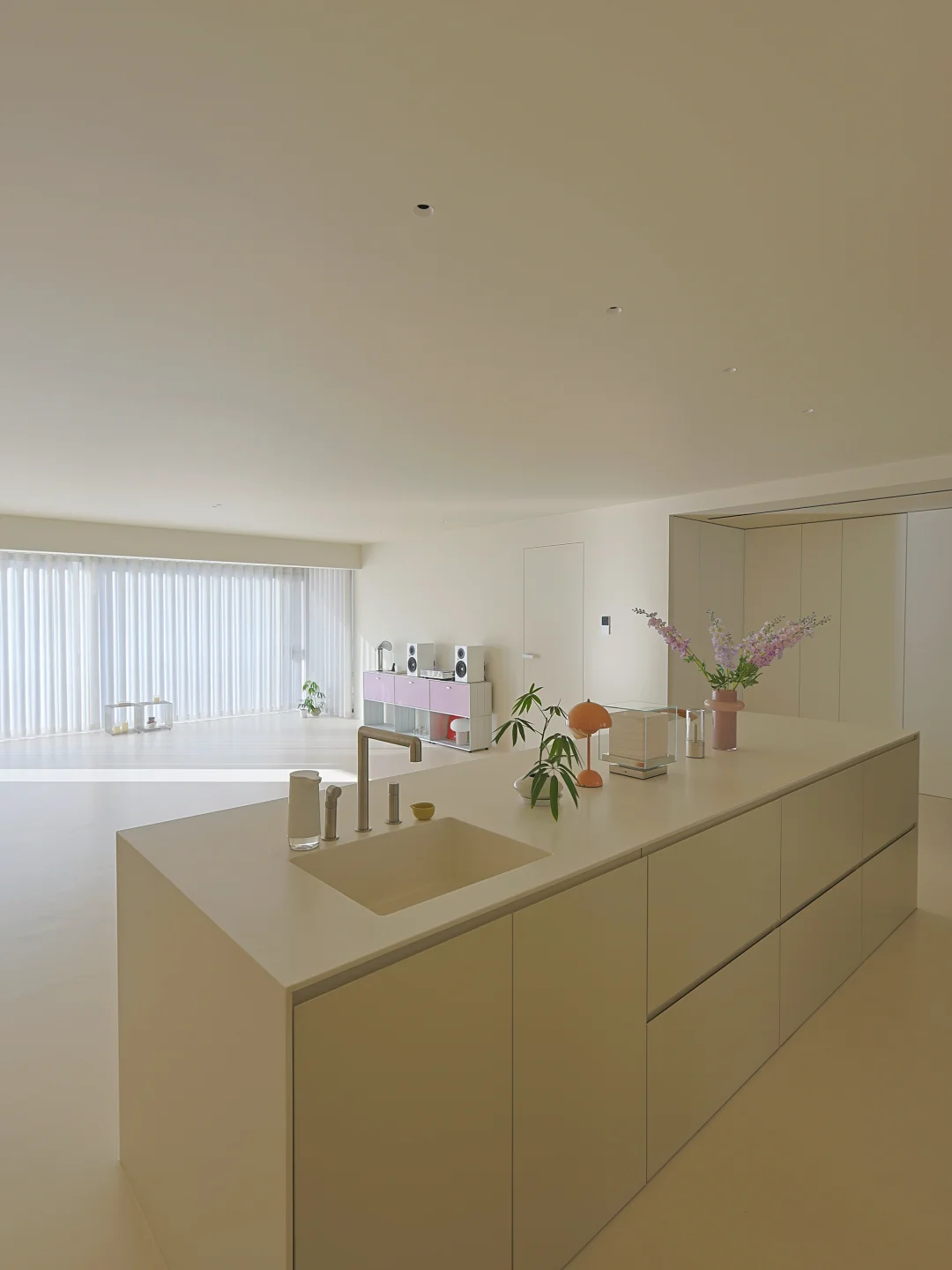 155 平装成极简风 空无一物真的显大又好打理 住着像 300 平,越住越舒服 做好收纳所有杂物通通藏起来 干净清爽的家,怎么待都舒服~