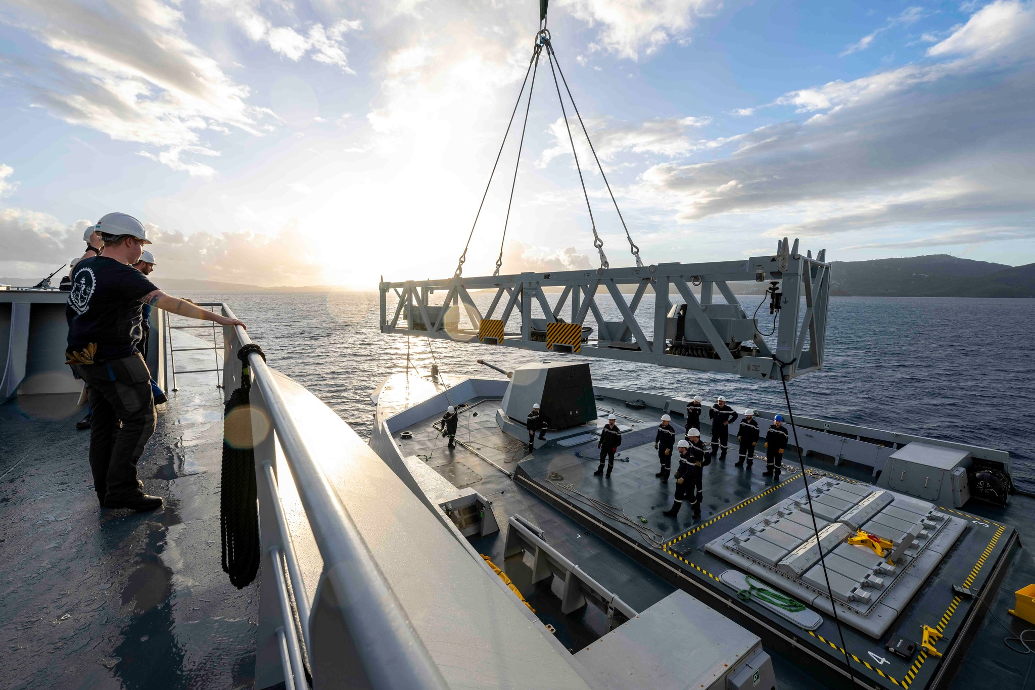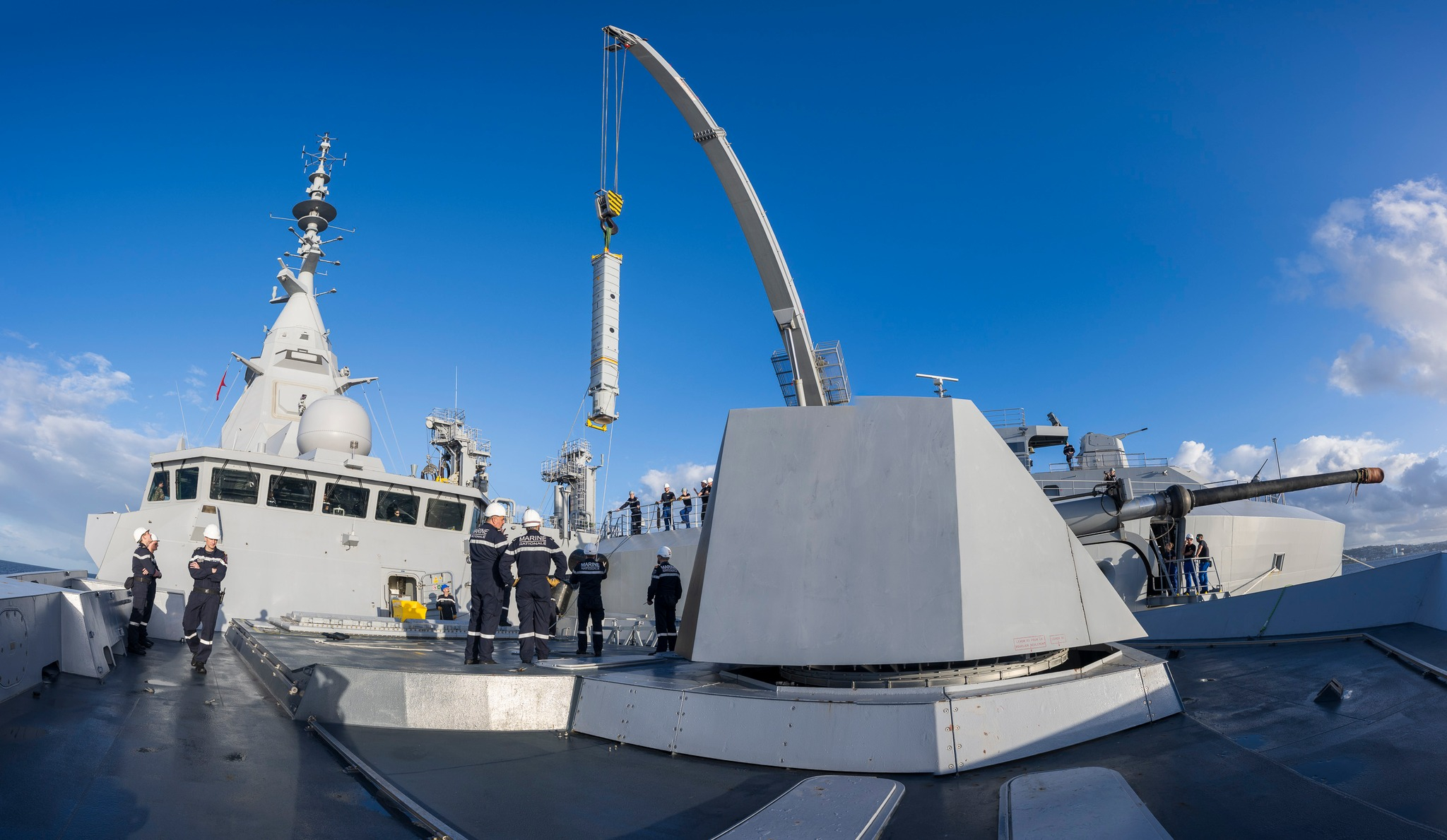 3月9日,法国海军“罗纳尔克海军上将”号防御与干预护卫舰和“雅克·斯托斯科夫”号综合补给舰在法兰西堡海岸附近进行了一次海上垂直发射装置补给导弹测试,根据图片来看,法国海军进行的测试是在锚地进行的,两艘军舰抛锚后靠帮,补给舰使用吊车将导弹发射箱插入护卫舰的垂发中,网页链接,相当于MD一等人在2023年进行的测试,【图6】目前一等人已经迭代到第二代,可以一次为两个相邻的VLS装填导弹发射箱,提高了装填速度。每天认识一件兵器烽火问鼎计划
