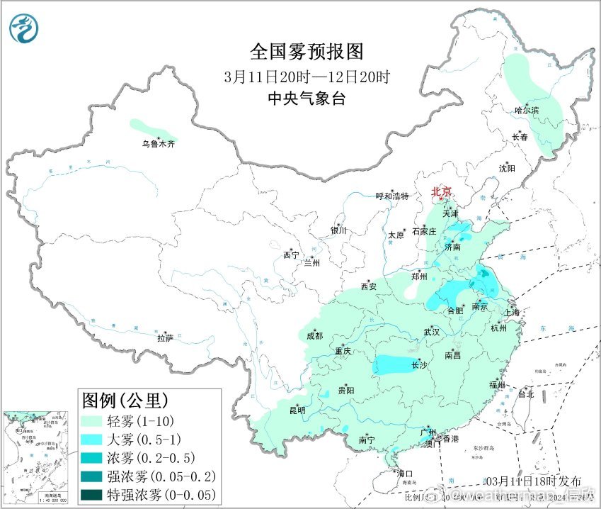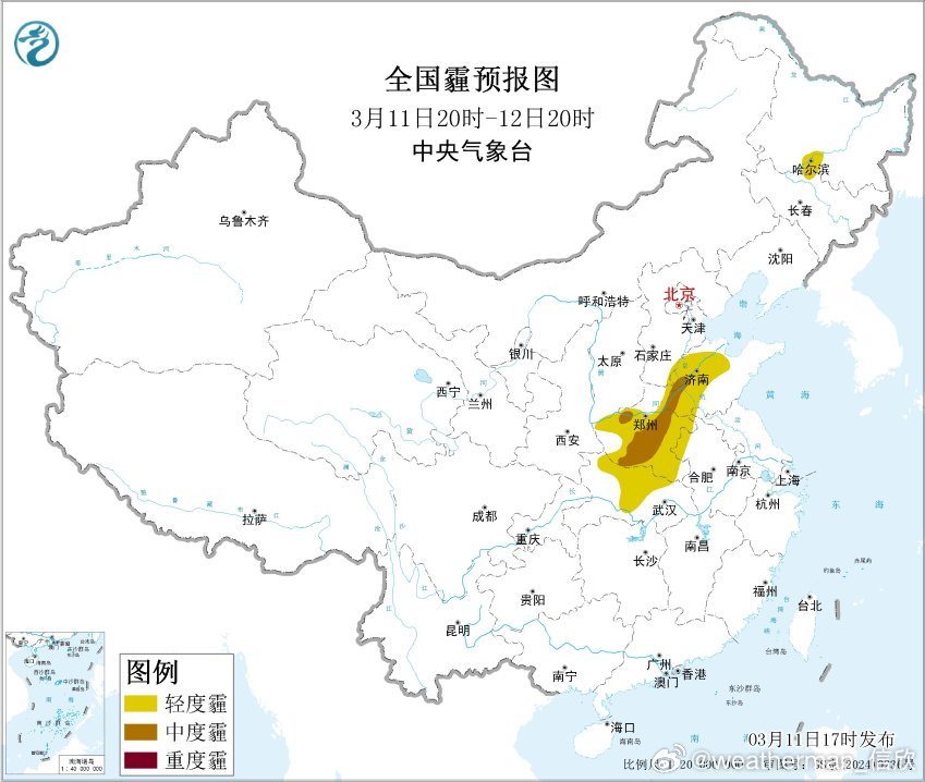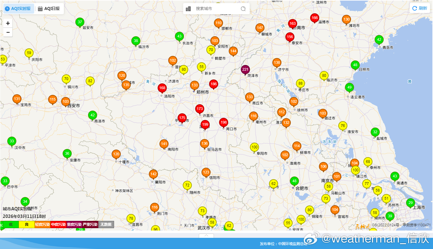 【雾和霾】今天18时,辽宁河北山东河南安徽湖北陕西部分地区,有轻度污染,山东河南部分地区有中度污染,菏泽有重污染,对应有霾。今晚到明天,黄淮一带的霾可能还会持续。13-14日随着降水增多、冷空气东移南下,霾有望被清除。