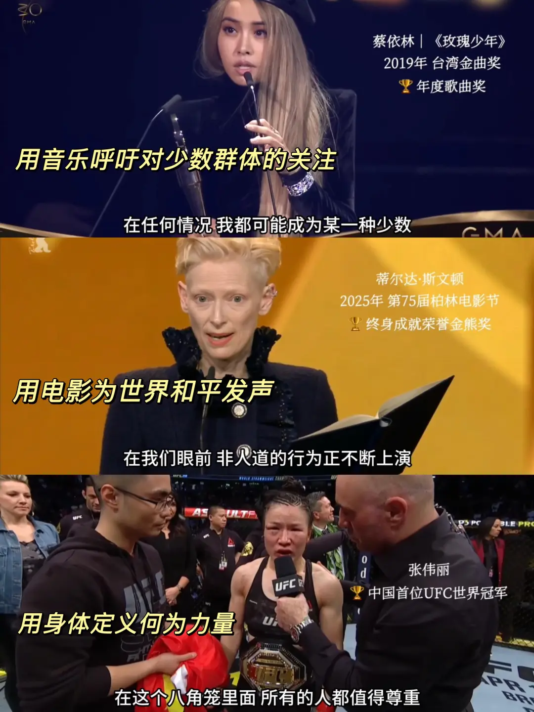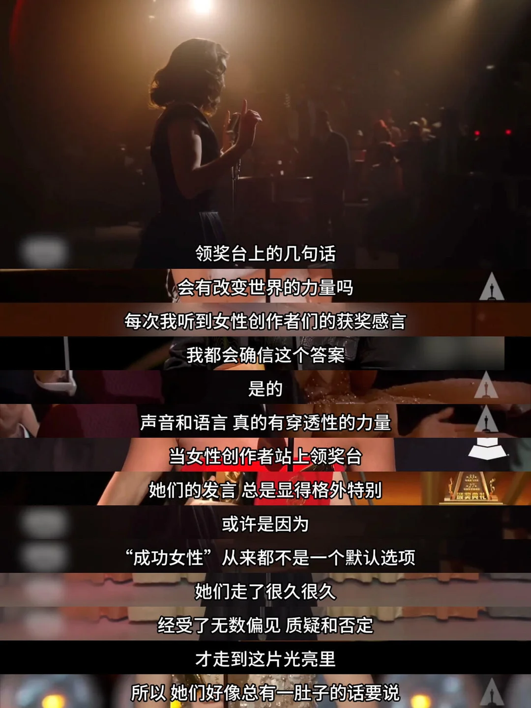 我们总在谈“女性要上桌”,但“上桌”从来不是一句空洞的口号。它是当女性终于能从镜头后走到台前,坦然接受掌声与注视;是当她们开口说话时,世界愿意停下倾听。这种话语权的回归、价值的被看见,才是“女性上桌”的意义所在。 最近刷到作者「切片计划」创作的视频《当女性站上领奖台,她们会说些什么》,看完内心很是触动🥺当这些女性们站在聚光灯下,我看到的不仅是一场场颁奖礼,更是一次次极具象征意义的“女性上桌”——不是作为陪衬,不是作为被凝视的对象,而是作为主体,作为讲述者,作为规则的改写者。 是她们打破了“女性不配站在高光里”的偏见,用自己的成功证明,女性不必困在他人定义的框架里。是她们为后来者点亮前行的灯,为少数群体发声,更是为女性争取到了更多本就该有的利益。最戳人的,是她们领奖时对所有女性的鼓励与期许。 当越来越多女性站上领奖台,说出的是感谢、是鼓励、是对群体的牵挂时,“上桌”就有了最动人的模样——不是争夺,是共享;不是征服,是共赢。 所以,女性站上领奖台发言的这几分钟,不仅是她们个人荣誉的加冕,更是女性力量的集结。当越来越多的女性创作者敢于发声、敢于表达,我们看到的,只会是一个更加多元、真实、有力的世界正在被构建! 不止于这些站在领奖台上的她们,在三八妇女节之际,dy也是联动了38位女性创作者,她们也都在用自己的不同方式,鼓励更多女性勇敢追求梦想。比如博主铁豆参加F1学院上海站让我们看到了:女孩也可以成为一名车手。olga姐姐和梅耶的对话,让我们感受到了无惧年龄活出精彩的人生。旅行博主何香蓓不惧他人眼光自由看世界。 我们需要不仅要为这些站上舞台的女性鼓掌,也要为每一位女性创作者👏