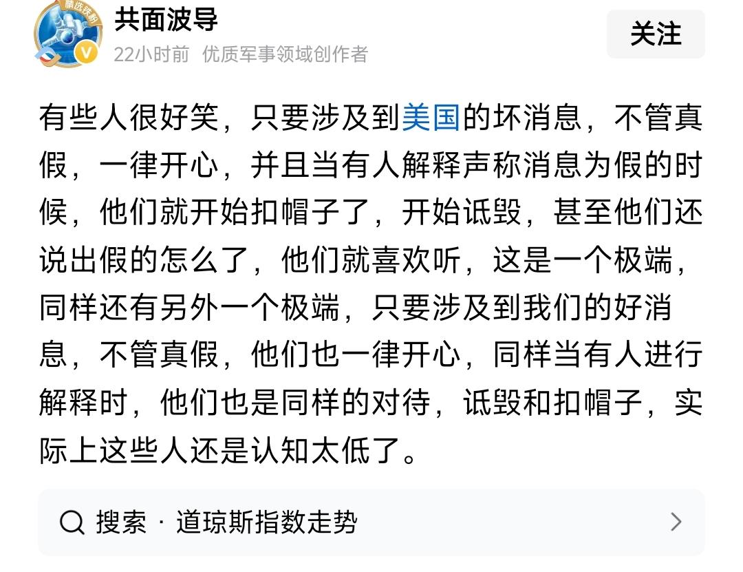 这种理中客,底色就是站美国的。他预设的立场就是美国的坏消息是假的,中国的好消息也是假的。甚至你因为中国的好消息感到开心,他也会觉得你有问题。