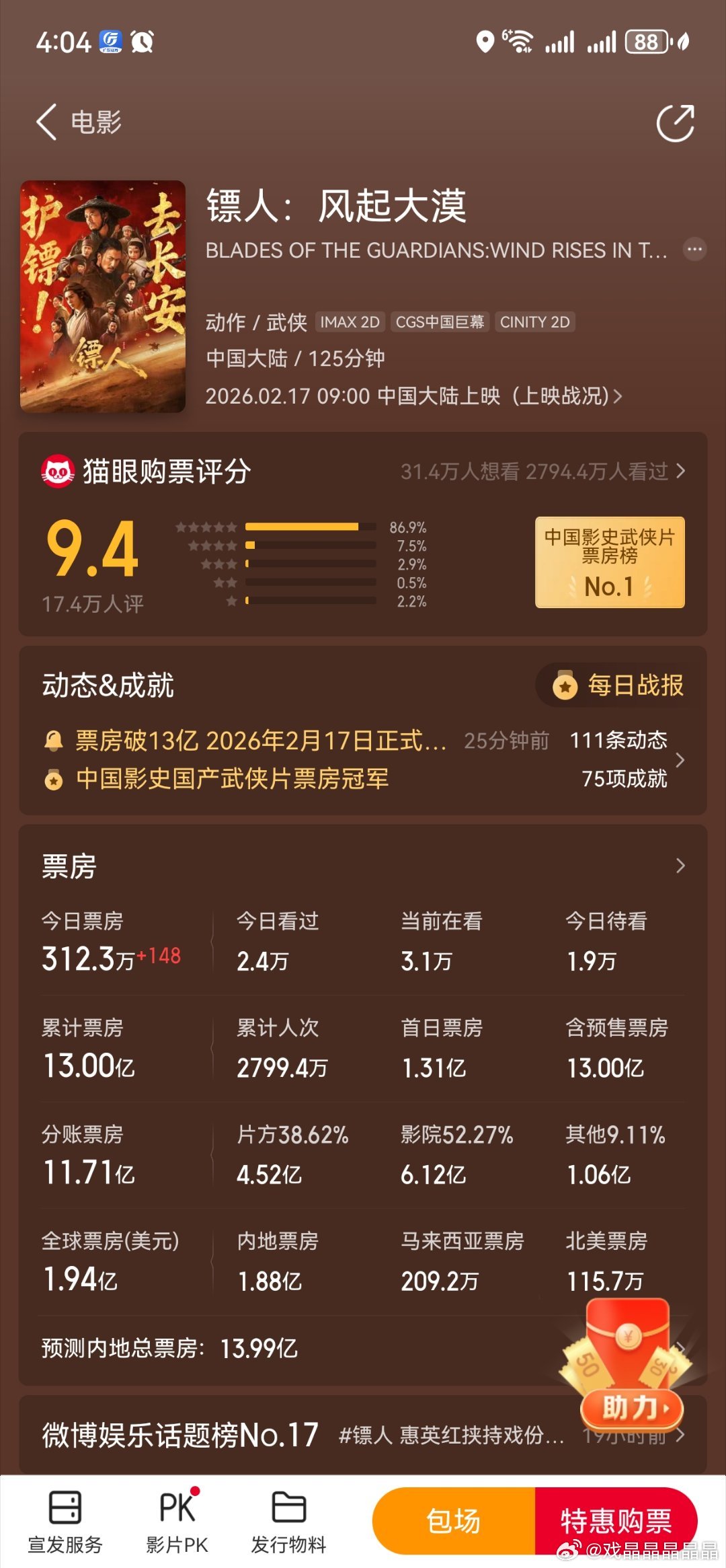镖人票房已经超过13亿了!