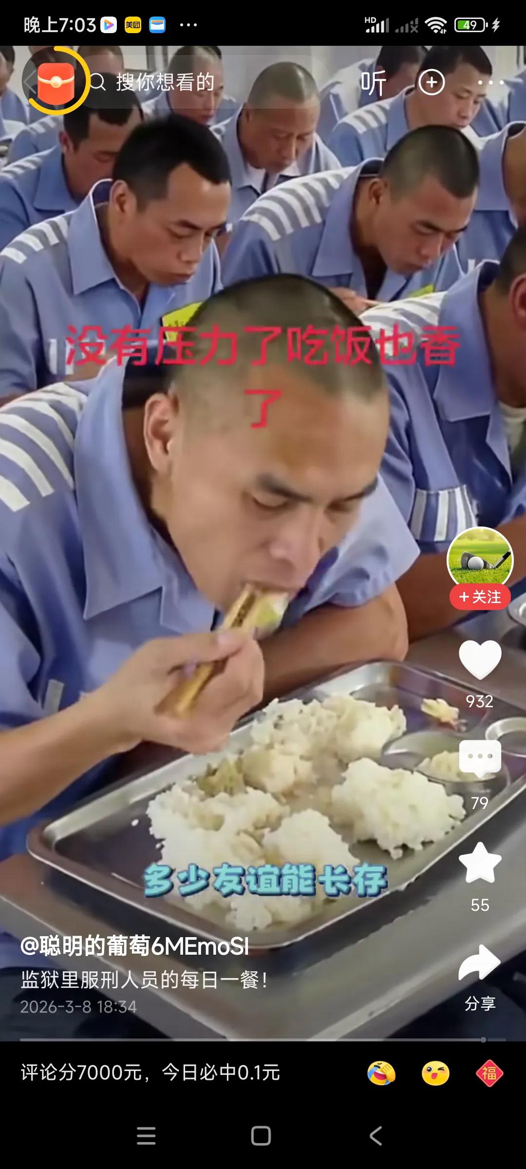 服刑人员的伙食,比较简单,主要目的是改造,所以吃饭不是主要的,吃饱就不错了,想吃好一点,喝点啥,不太现实,等出狱以后再说吧,, 这些人到了这个环境,不知道心里在想啥,,后悔是来不及了,[捂脸][捂脸][捂脸],不如好好改造,争取减刑,提前释放,,,[捂脸][捂脸]