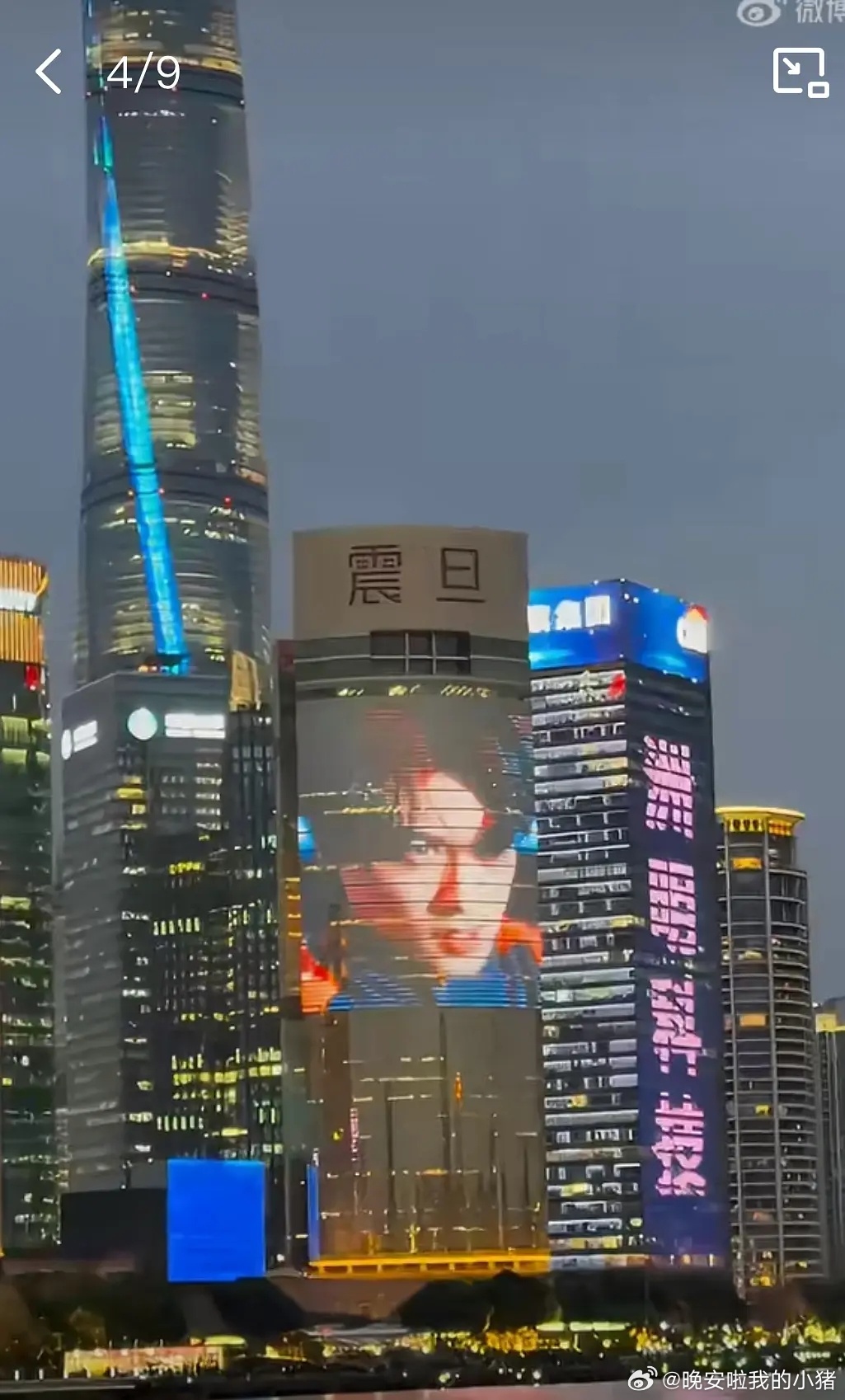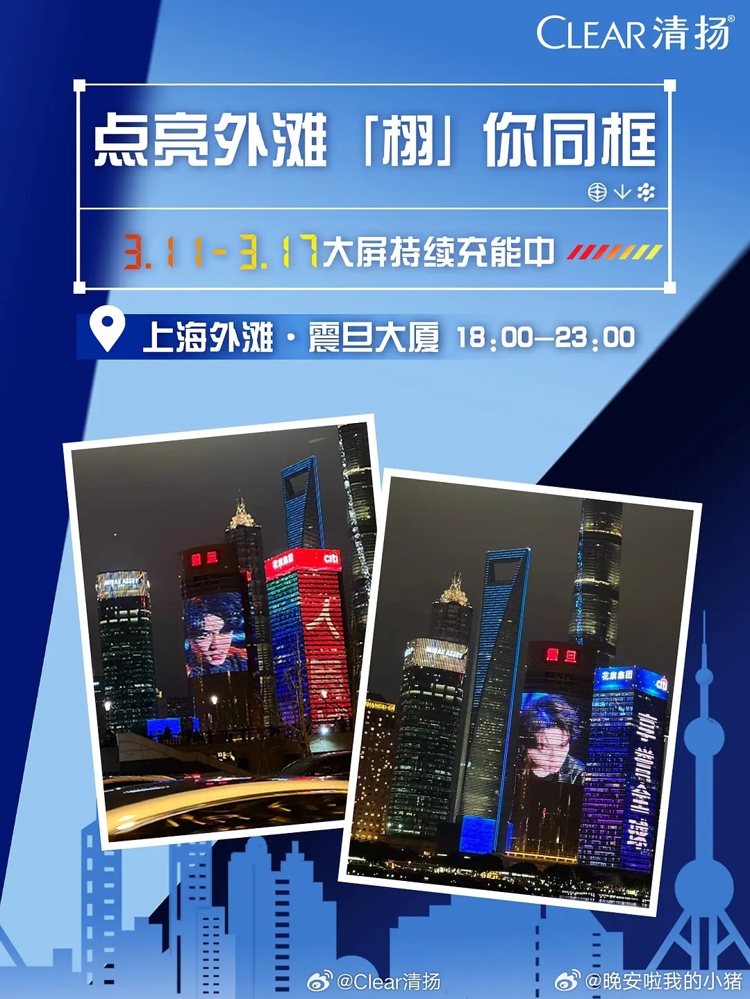 清扬为田栩宁点亮上海外滩灯光秀,震旦大厦7天霸屏,1min就4w
