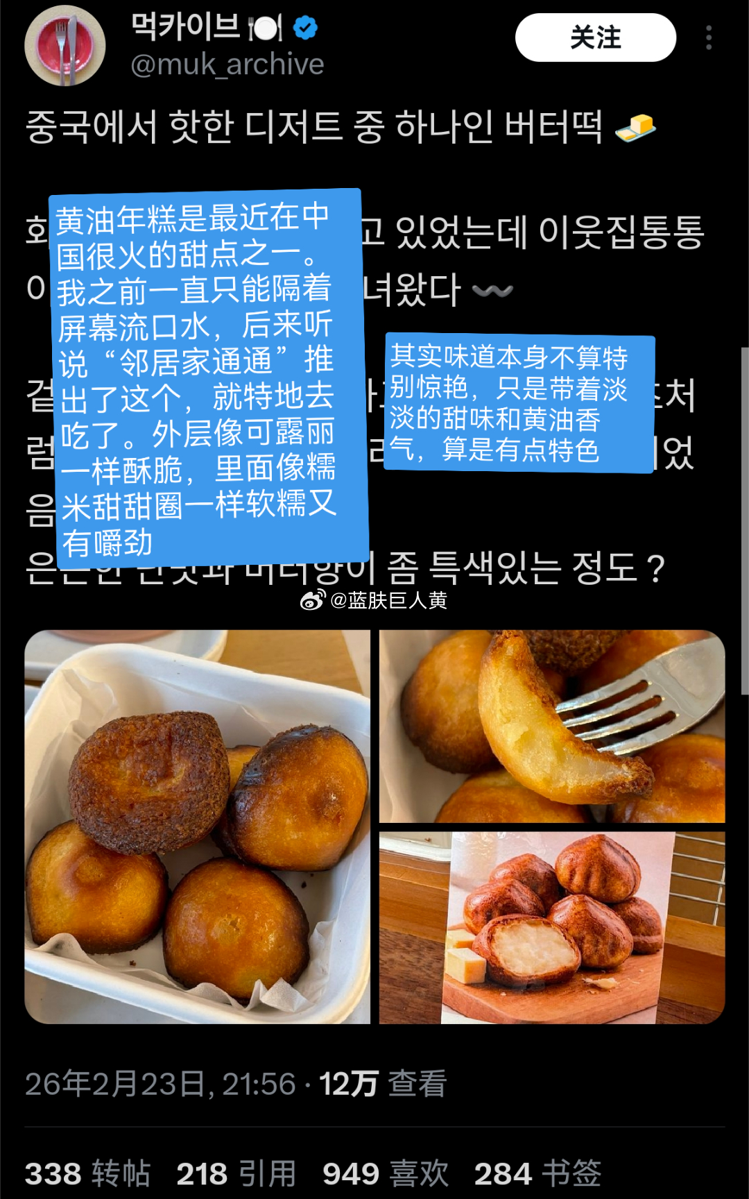 中国网红甜品黄油年糕在韩国爆火 韩媒称即将取代迪拜巧克力麻薯在韩国的热度