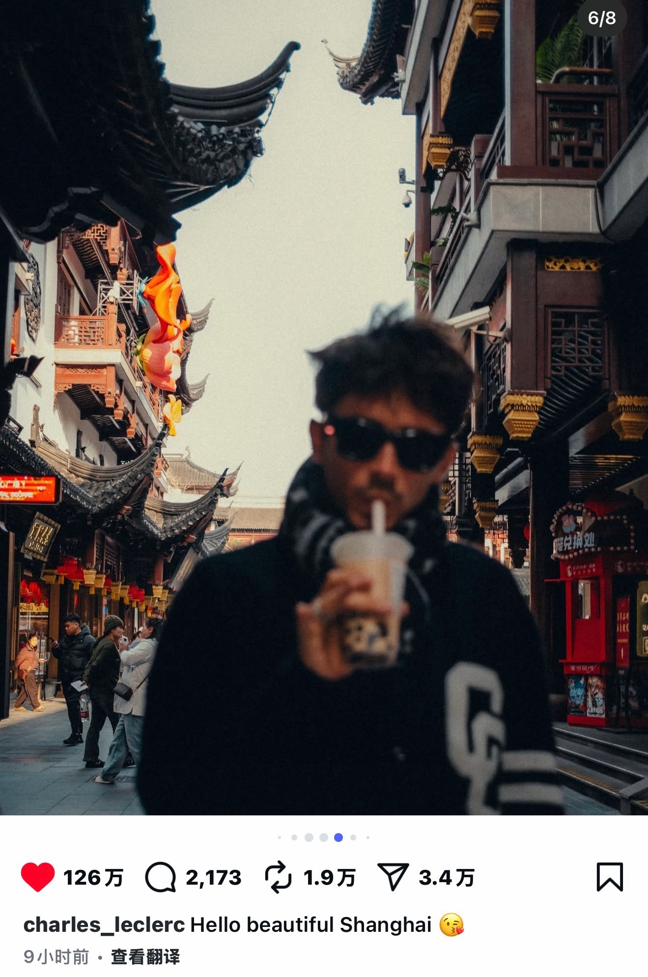 勒克莱尔来上海喝奶茶的照片在外网已经130万点赞😱这数据太疯狂了!上海F1的历