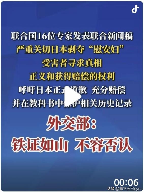 日前,联合国人权理事会特别机制16位专家发表联合新闻稿,严重关切日本剥夺“慰安妇”受害者寻求真相、正义和获得赔偿的权利,呼吁日本正式道歉、充分赔偿,并在教科书中保护相关历史记录。 这一事件是国际社会针对“慰安妇”问题对日本发出的罕见高规格联合谴责。16位专家隶属于联合国人权理事会特别机制,其联合发声具有较高权威性。新闻稿用了“严重关切”和“剥夺权利”这样的严厉措辞,相当于联合国正式批评日本政府在受害者讨公道问题上不作为。 这份谴责性新闻稿突出的重点是 正式道歉,要求日本政府作出正式道歉。这针对的是日本仅有的“私人基金”赔偿和“反省谈话”,而非官方法定层面的彻底认错。 充分赔偿,要求给予受害者法律上的充分赔偿。此前日本主张通过《旧金山和约》解决了索赔权,但联合国专家不认可这一立场。 教科书保护历史,要求日本在教科书中如实保留相关记录。这是针对日本右翼势力试图篡改教科书、抹杀“强征”史实的直接反击。 联合国人权专家集体发声,标志国际舆论对日本压力升级,这不是个别国家抗议,而是联合国人权专家组的集体定性,标志着“慰安妇”问题从双边外交纠纷,正式升格为国际社会对日本人权记录的审查。 联合国呼吁“在教科书中保护记录”,说明国际社会已经注意到日本在历史认知领域的倒退。此次发声意在阻止日本通过淡化教育来遗忘历史。 中国对联合国此举表达坚定支持,重申“铁证如山,不容否认”! 总结来说,这次事件是国际主流社会对日本在历史问题上“装睡”态度的又一次强力警告,明确告诉日本:想成为“正常国家”,必须先正视曾经的“不正常罪行”。