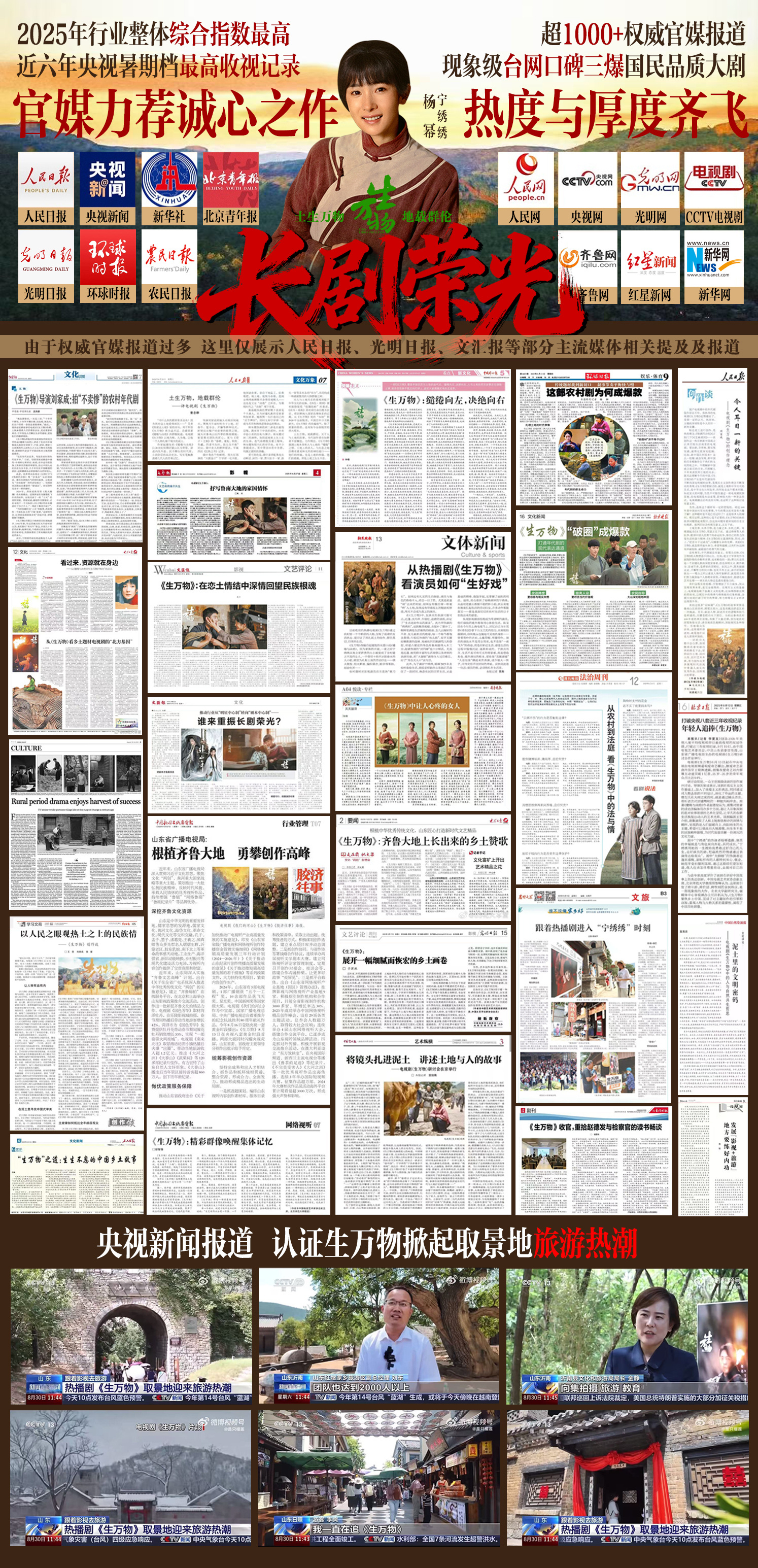 七部云合破40%的剧杨幂生万物 台网双爆的《生万物》不仅云合占比46.1%登2025年第一历史第3,《生万物》更是2025年唯一单日全平台(云合酷云猫眼灯塔)破亿剧集。十一天完播创造多项纪录:爱奇艺热度11018年冠史亚,三集连播酷云收视峰值央八史冠,全平台指数登顶,拉动爱奇艺股价暴涨27%。2025年行业整体综合指数最高剧集,获超多主流官媒报道更火上2026年两会,带动取景地临沂文旅经济旅游流量上涨500%。首播距今半年多已上星15轮,暂成2026山东卫视黄金档收视年冠以及25-26年度东南卫视黄金档收视年冠。抖话题播放量突破150亿较完结增长82%,展现超强续航力。杨幂凭借剧中宁绣绣一角色获封CMG总台视后,荣誉加冕,精彩还在继续