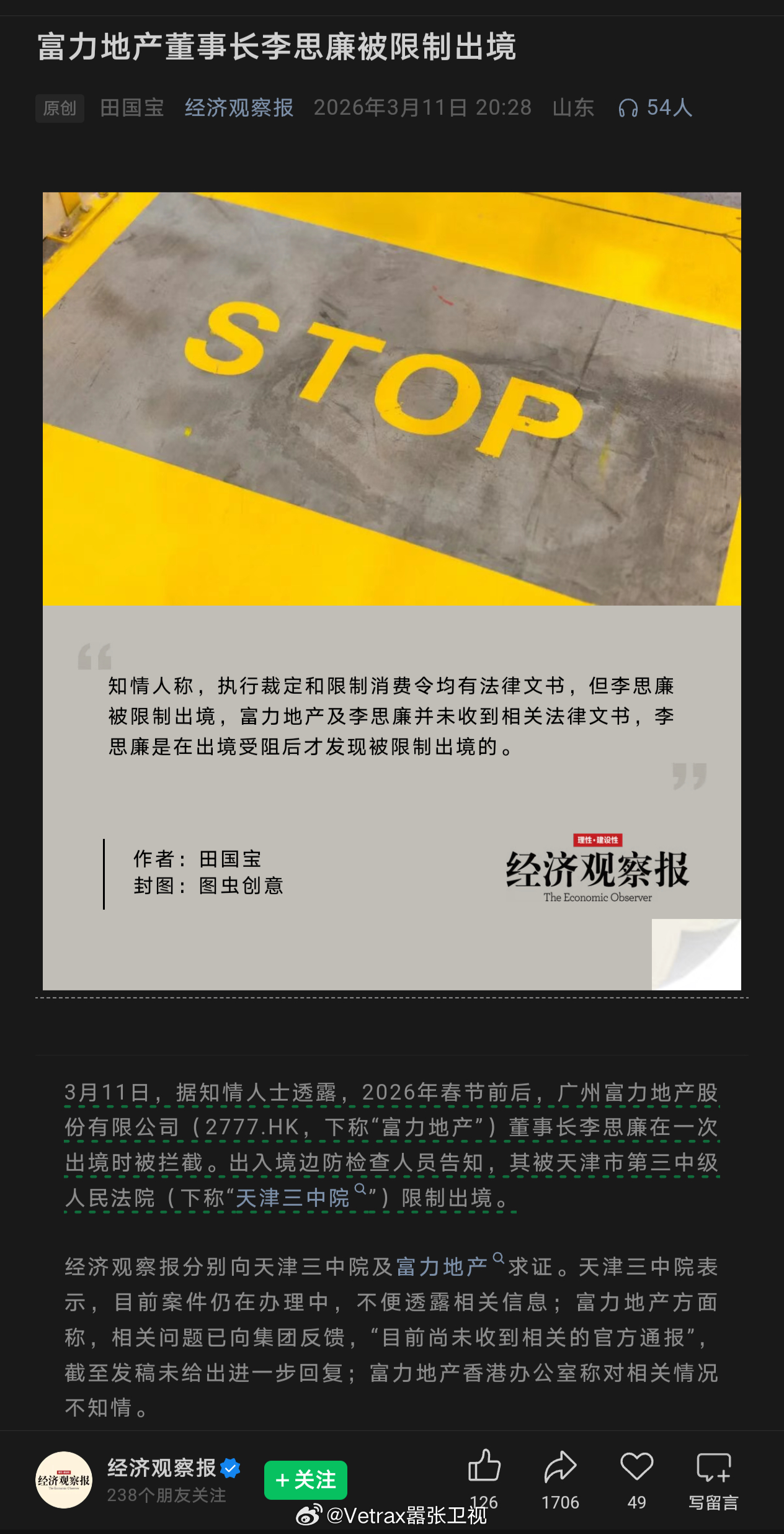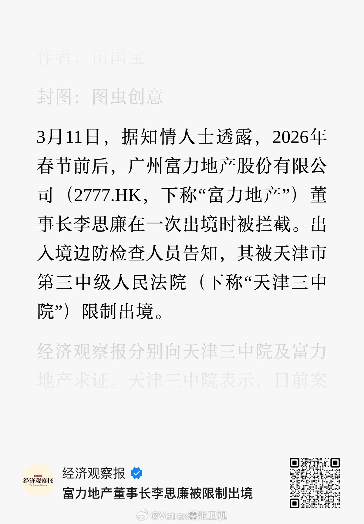Emmmmm,又一家房地产企业……《经济观察报》今日报道,知名房地产企业富力地产的董事长李思廉被天津市第三中级人民法院限制处境。