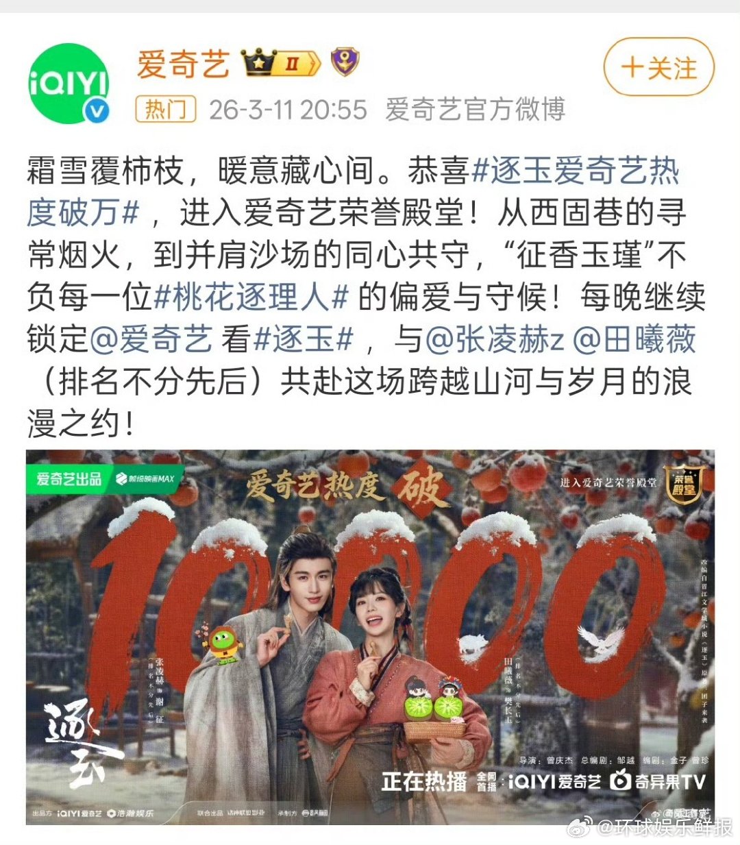 田曦薇逐玉破万贺图张凌赫逐玉破万贺图恭喜这个逐玉破万逐玉爱奇艺破万