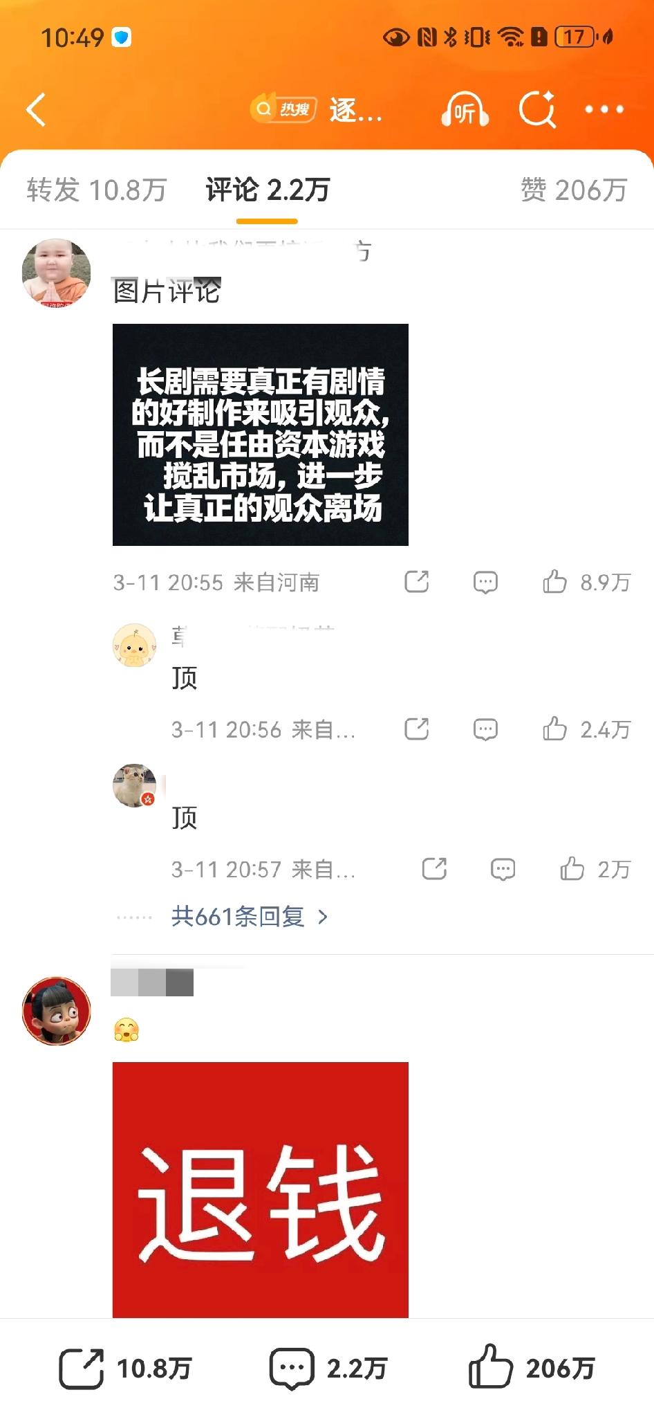 逐玉爱奇艺热镀锌破万,粉丝评论居然控不住路人![笑哭] 真爆剧自有剧粉为其辩经!逐玉的剧粉呢?没看到,反而都是一些路人(都没有粉籍,这让牛田粉更加破防)不满剧方注氵[笑哭]