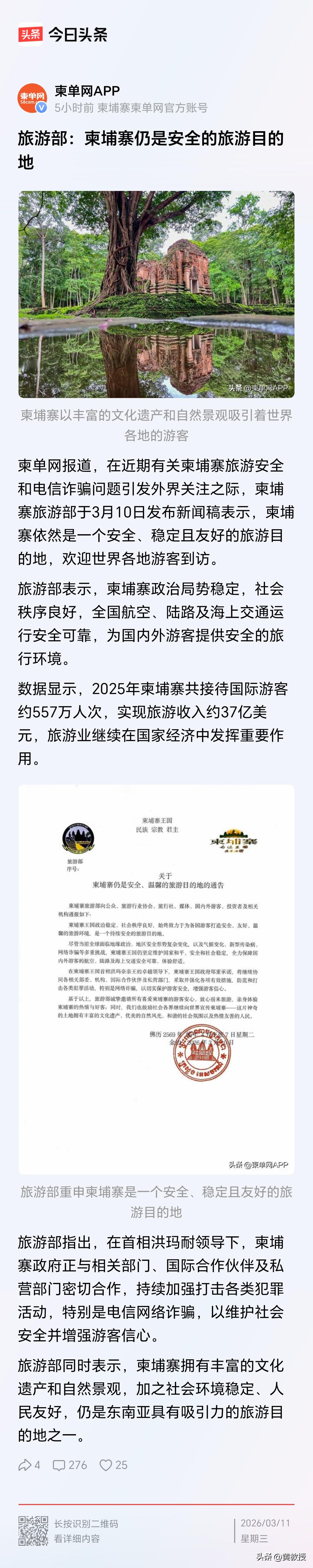 柬埔寨旅游部: 柬埔寨仍是安全的旅游目的地 您怎么看? 众所周知,日本旅游是不安全的