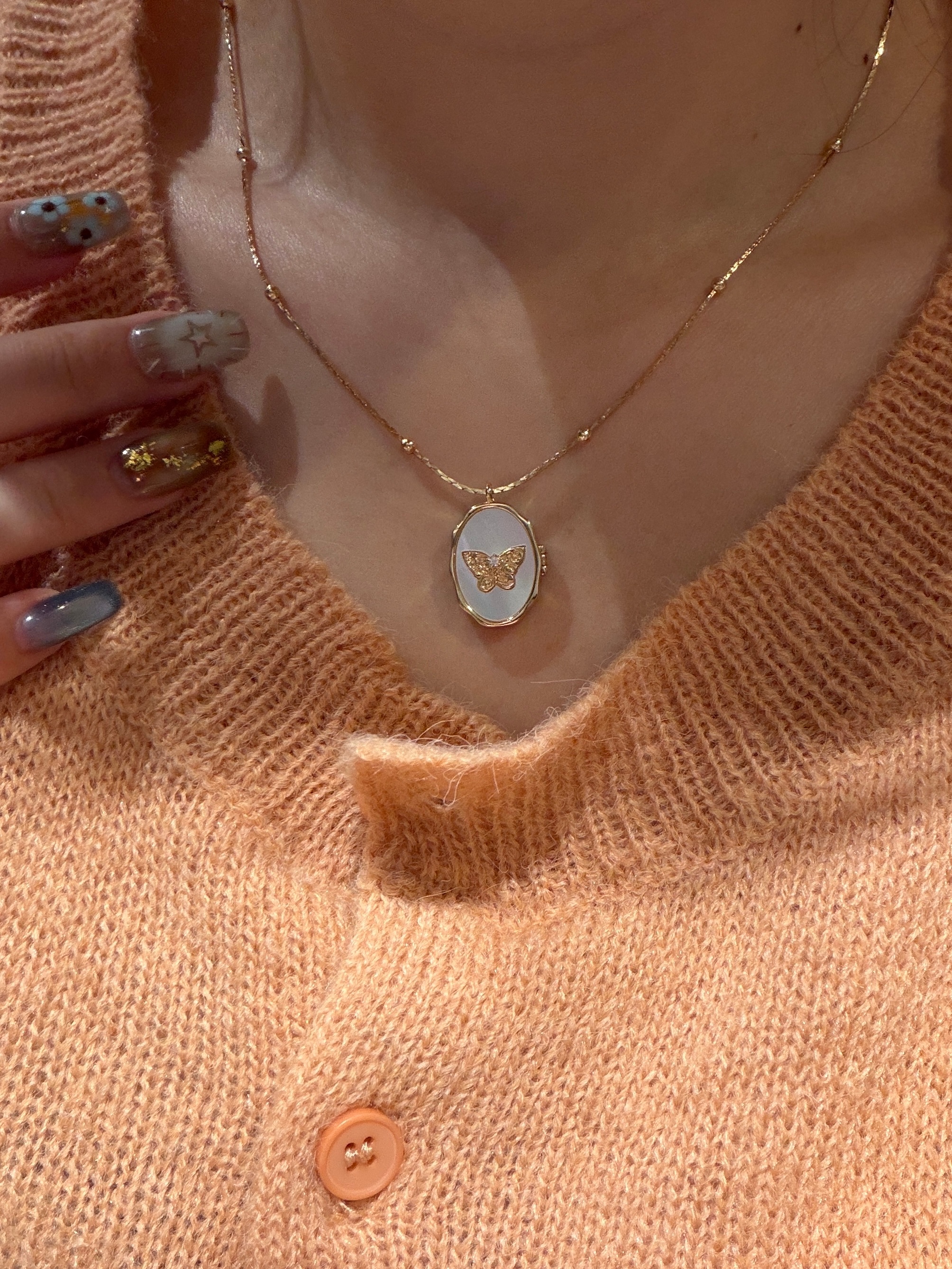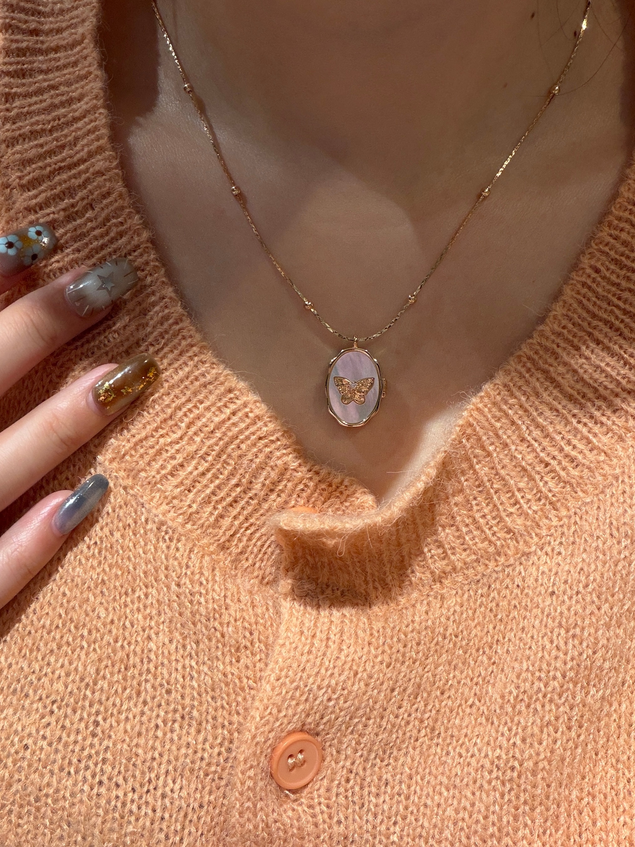 如果选一条最适合春天的项链🌺我一定选它!!!阳光下反射出的光泽感太有存在感了必须怼着镜头拍几张~~~🧸