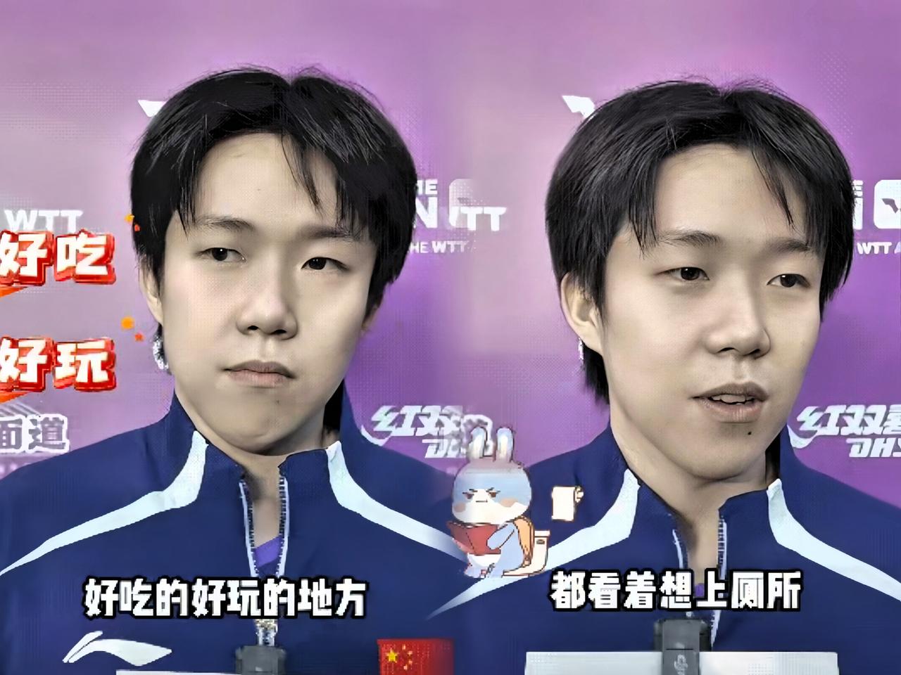 头哥这采访真的笑不活了! 刚打完比赛累得够呛, 记者问他重庆有啥推荐, 他直接坦白局: “其实我真不太能吃辣, 重庆这菜吧, 看着就想上厕所……” 这大实话说得也太生动了! 还说自己每次吃重庆菜都像在“突破自己”, 估计是边吃边突破生理极限那种! 网友更损, 直接让他挑战折耳根、香椿炒鹅蛋, 头哥听完估计只想说俩字:多笋!